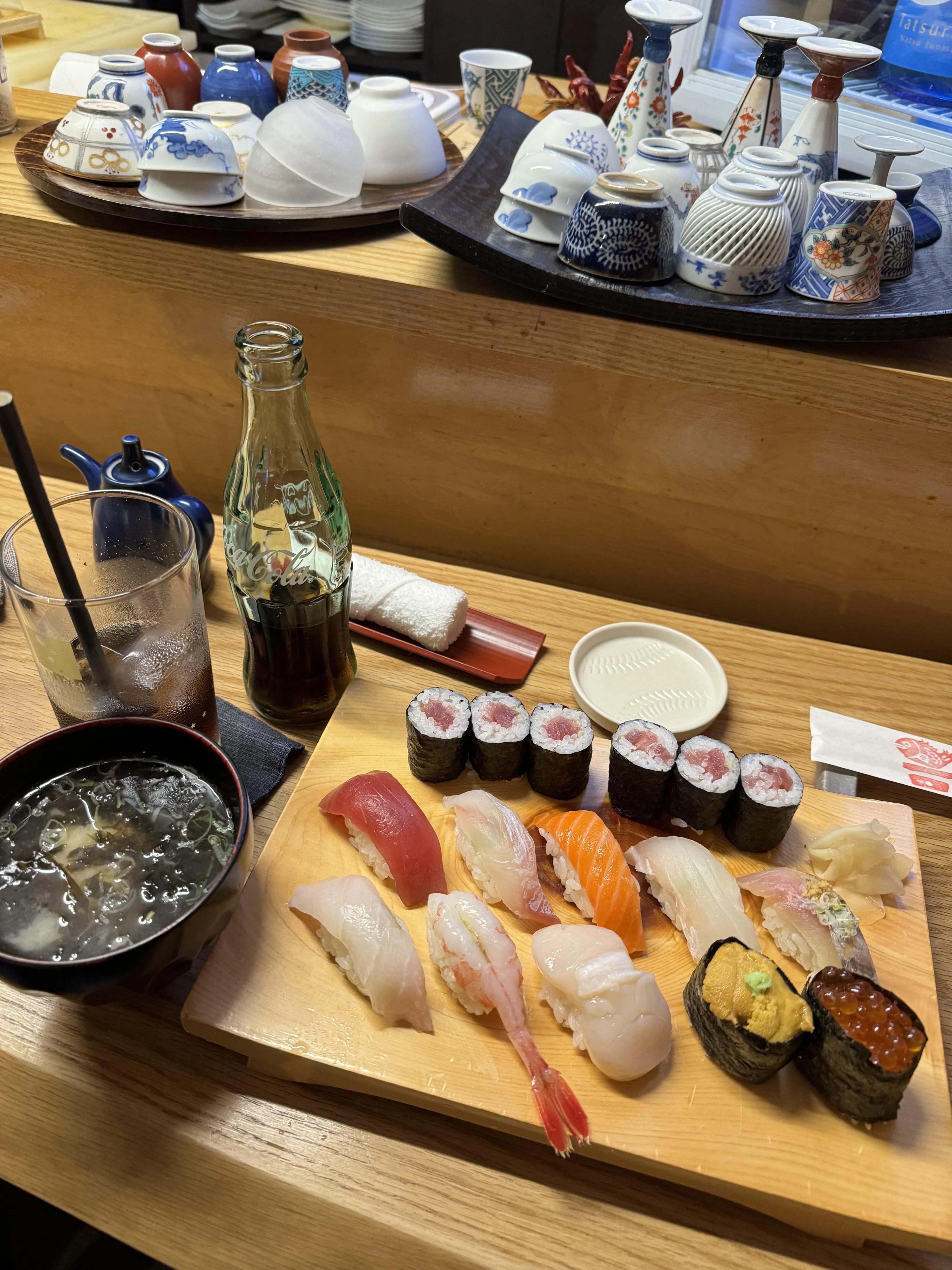 すしダイニングつかさ:这家寿司餐厅位于札幌円山山脚下的Hills. La・Bo地下一层。是我们参观完北海道神宫后偶然发现的。虽然是随意选择的,但体验超出预期。10个寿司套餐加6个铁火卷只需3000日元左右,味道也很不错。最棒的是可以坐在板前,与厨师直接用英语交流。