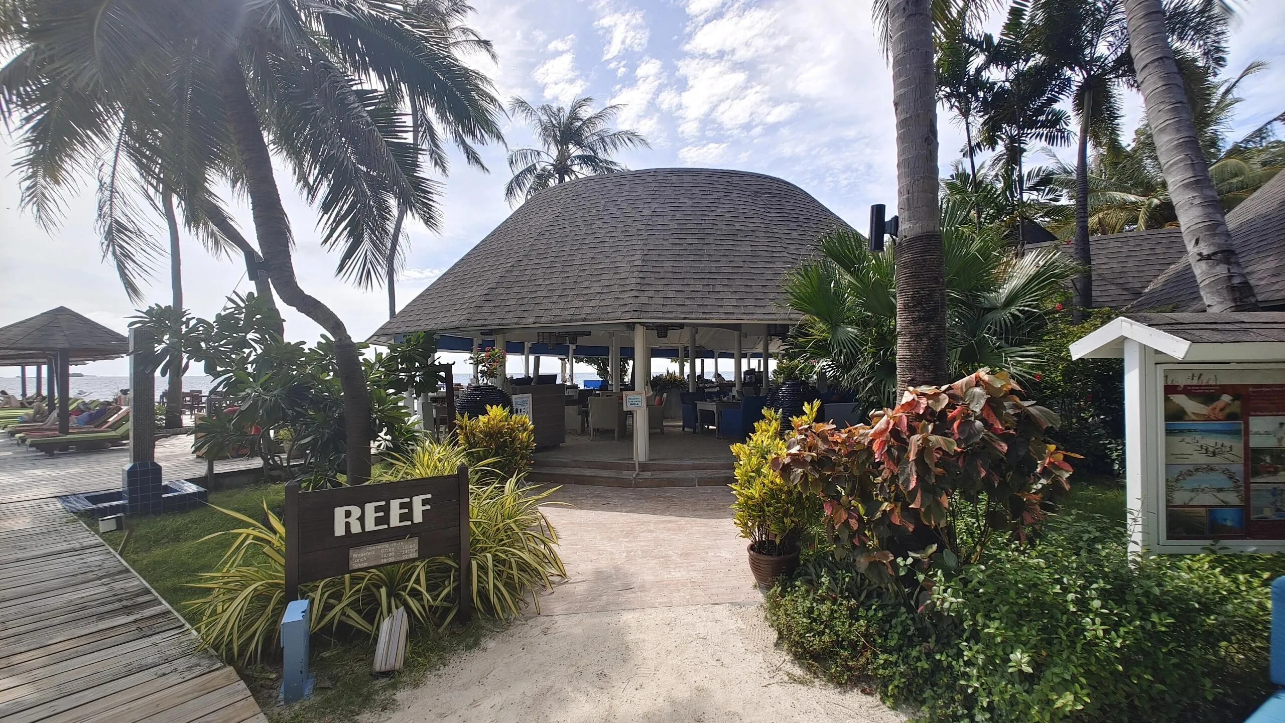 抵达后入住的是101号房间,外面是雪白宁静的沙滩,景色如同电脑桌面图片一般美丽。房间位置靠近餐厅,非常方便。选择AI全包果然是明智之举,在岛上用餐时感受颇深。