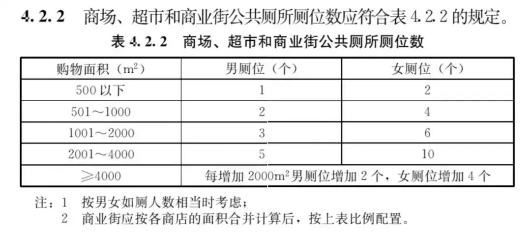 这一比例只包括蹲位,男厕还可以拥有小便池,意味着男厕的厕位常常多于女厕。