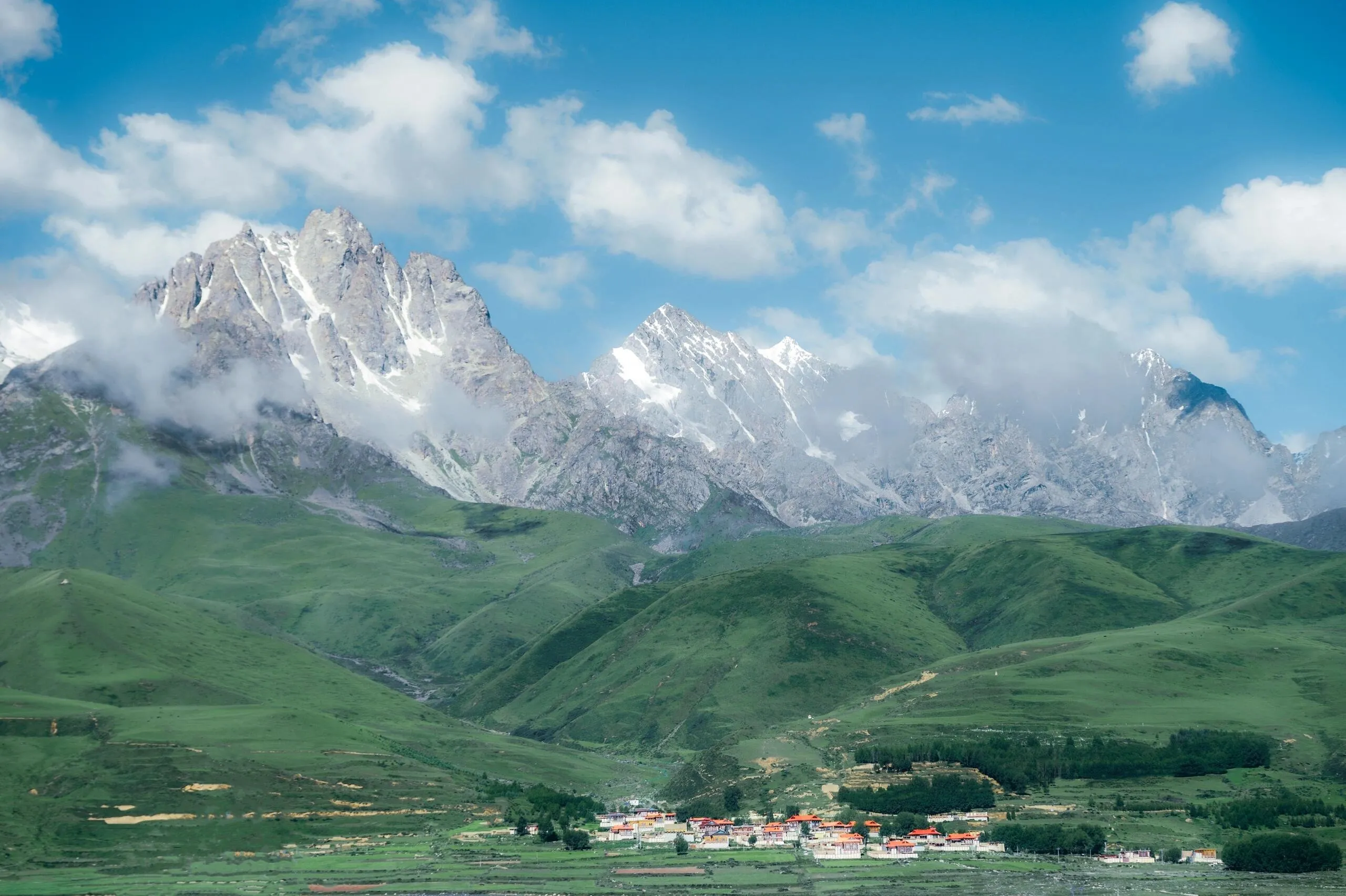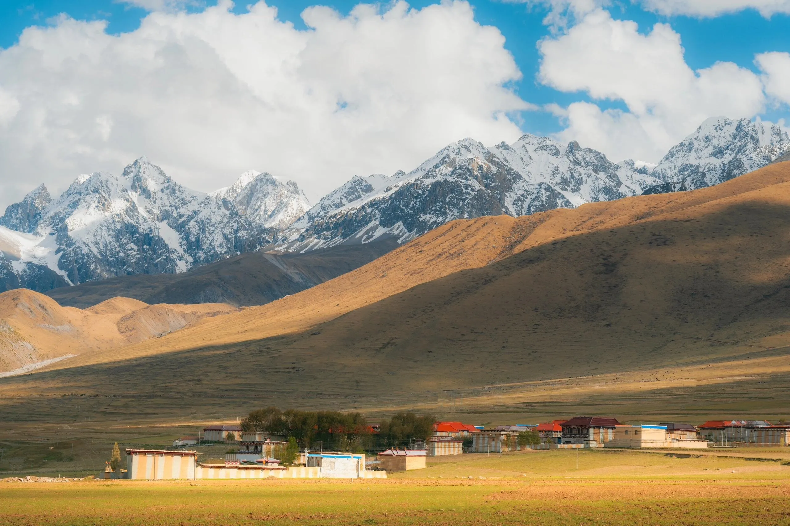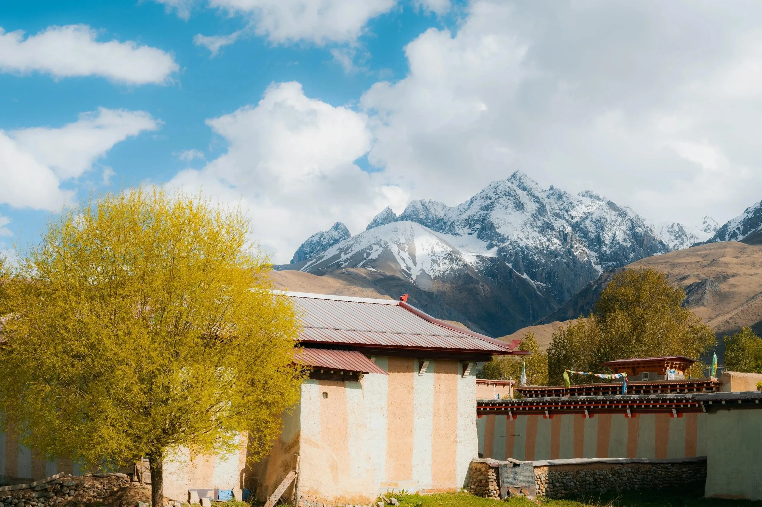 这里的美,在于雪山与田园的完美结合。与其他地方的雪山不同,百里青稞画廊的雪山既不是远在天边,也不是孤傲独立,而是与田园村庄和谐共存。当你行驶在这条公路上,两旁巨大的杨树掠过眼前,透过树叶的缝隙,你会看到连绵起伏的青稞田,蜿蜒的河流,远处的村落,以及村落之上雄伟的雪山。