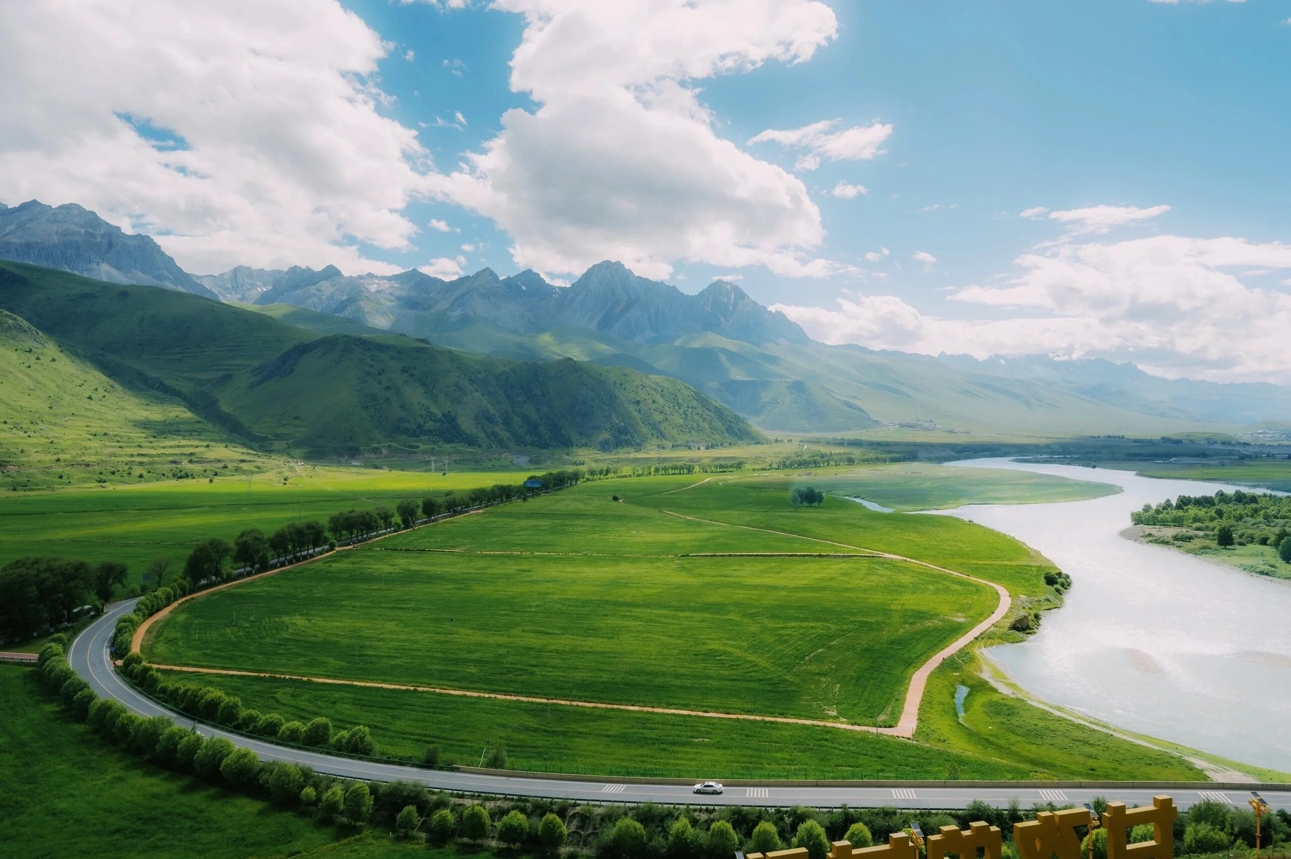 百里青稞画廊,位于四川甘孜县 ,是我心中川西最美的一条雪山公路。 这条画廊从圣康庄园延伸到格萨尔机场 ,短短20公里的国道,却蕴含了无尽的美景。