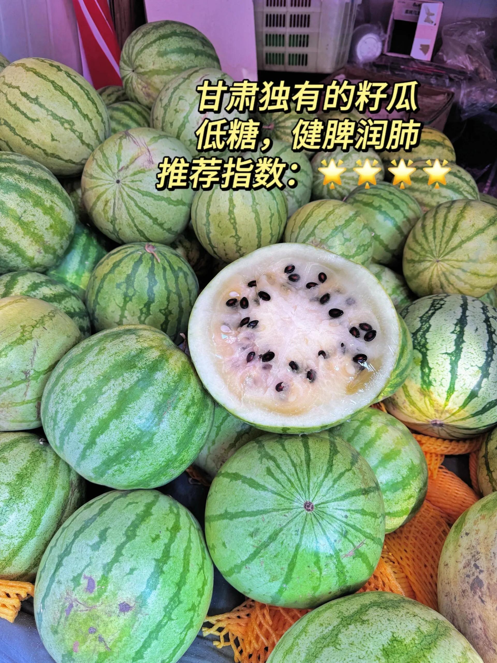 甘肃籽瓜是一种独特的水果,外形似西瓜,但果肉呈白色。口感清甜,有点像椰子水和人参果的结合,还带有淡淡的瓜香。籽瓜不仅美味,还具有润肺健脾的功效,是一种低卡路里的健康水果,适合各个年龄段的人食用。