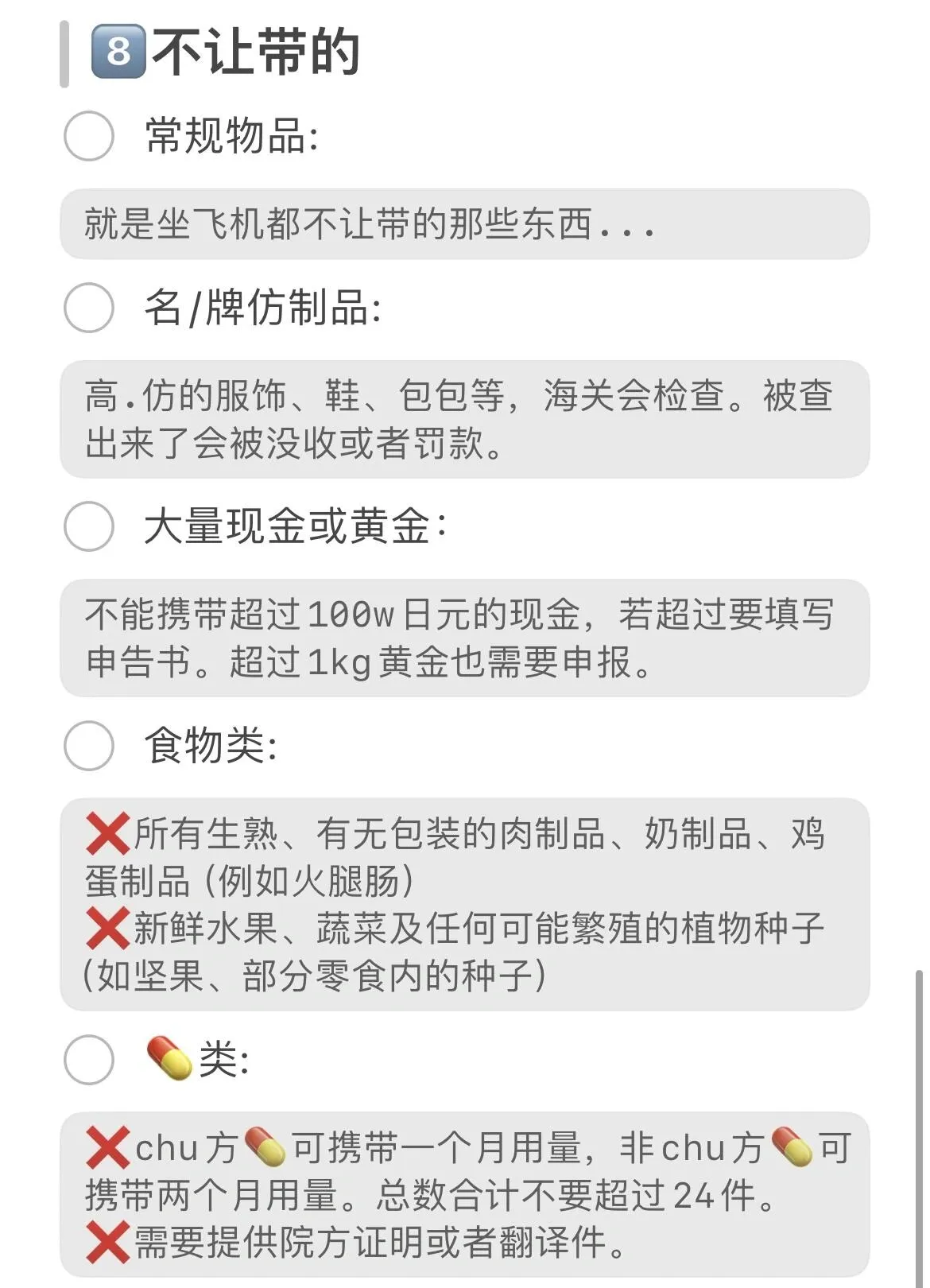 最后,建议大家查看日本入境禁止携带物品清单,避免不必要的麻烦。祝大家旅途愉快!