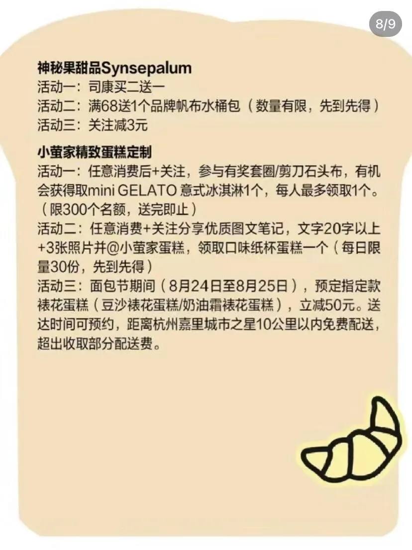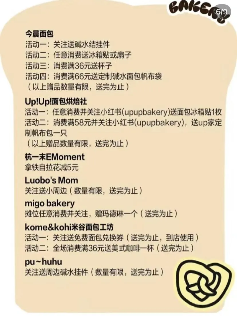 这次活动汇集了众多备受喜爱的面包店 ,不仅有杭州本土品牌,还有来自上海、宁波、南京、苏州、成都等地的网红品牌,可以说是一站式全打卡的绝佳机会。
