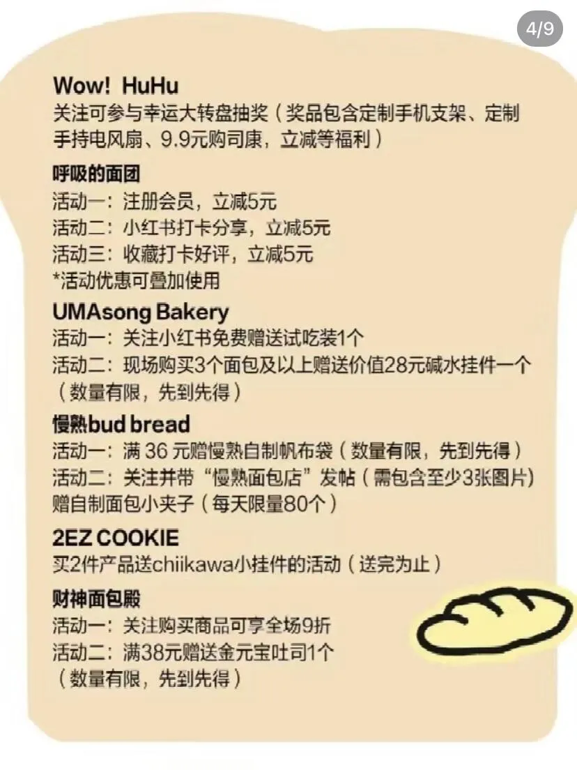 这次面包节无疑是面包爱好者的盛宴,不仅可以品尝到各地特色面包,还能感受不同品牌的独特魅力。无论你是追求日式风味、欧式口感,还是喜欢创新口味,相信都能在这里找到心仪的面包。记得准时到场,享受这场美味的面包盛宴!