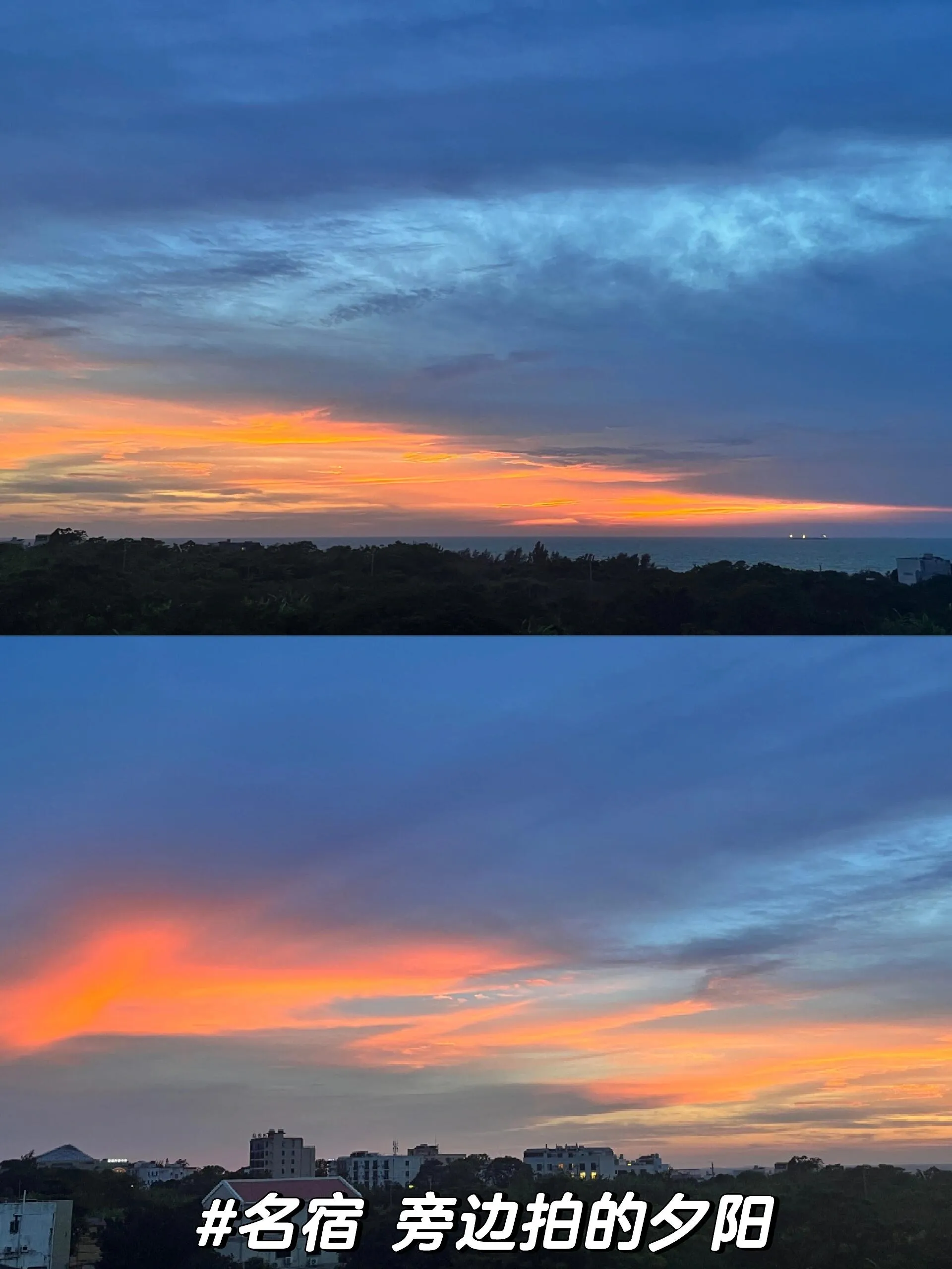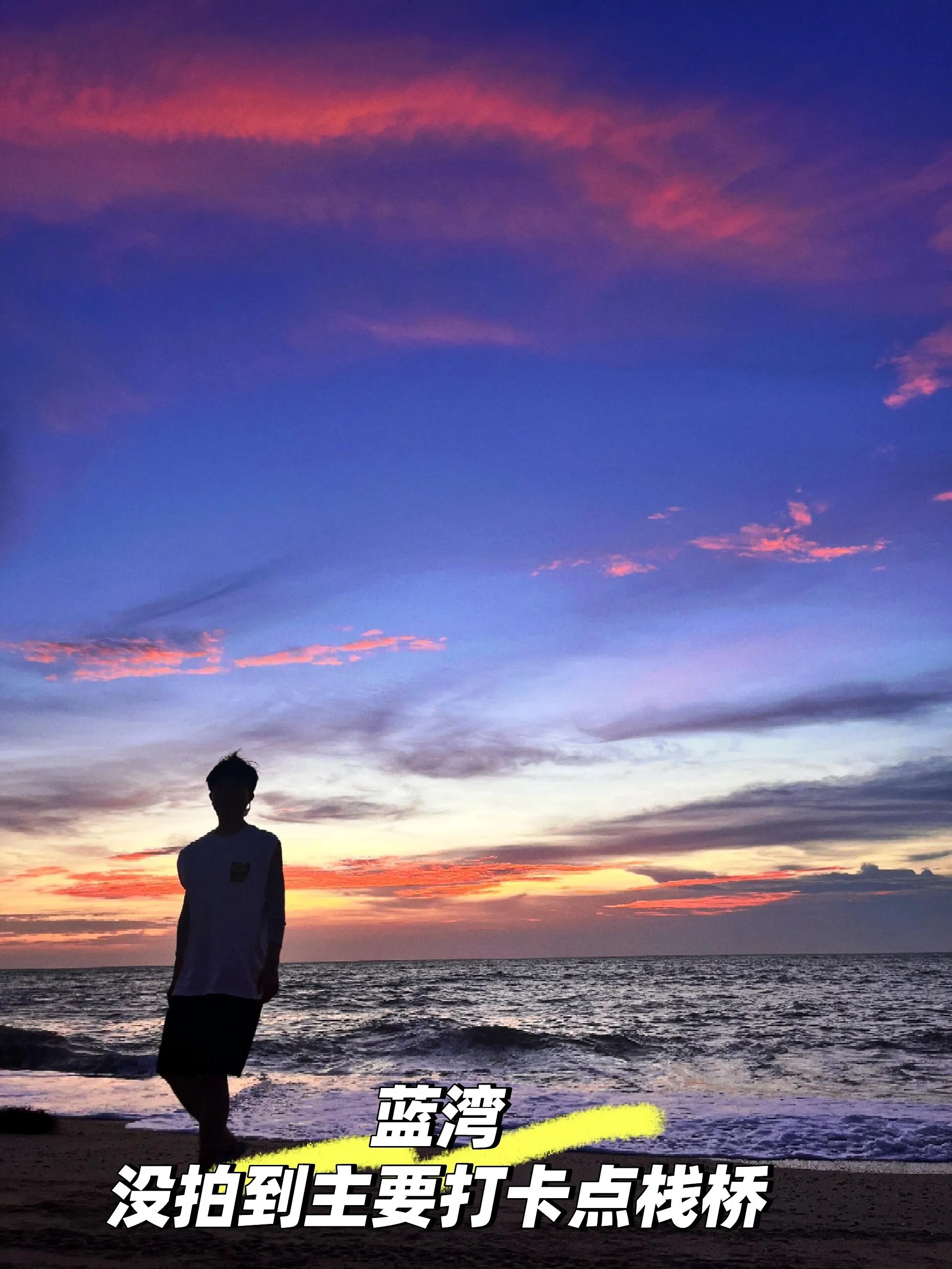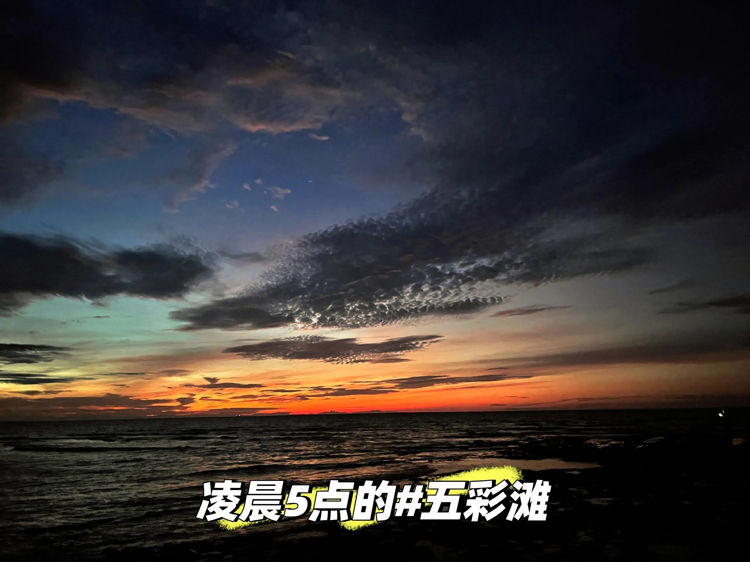 清晨到五彩滩赶海看朝霞。运气好的话,还能欣赏到美丽的晚霞。