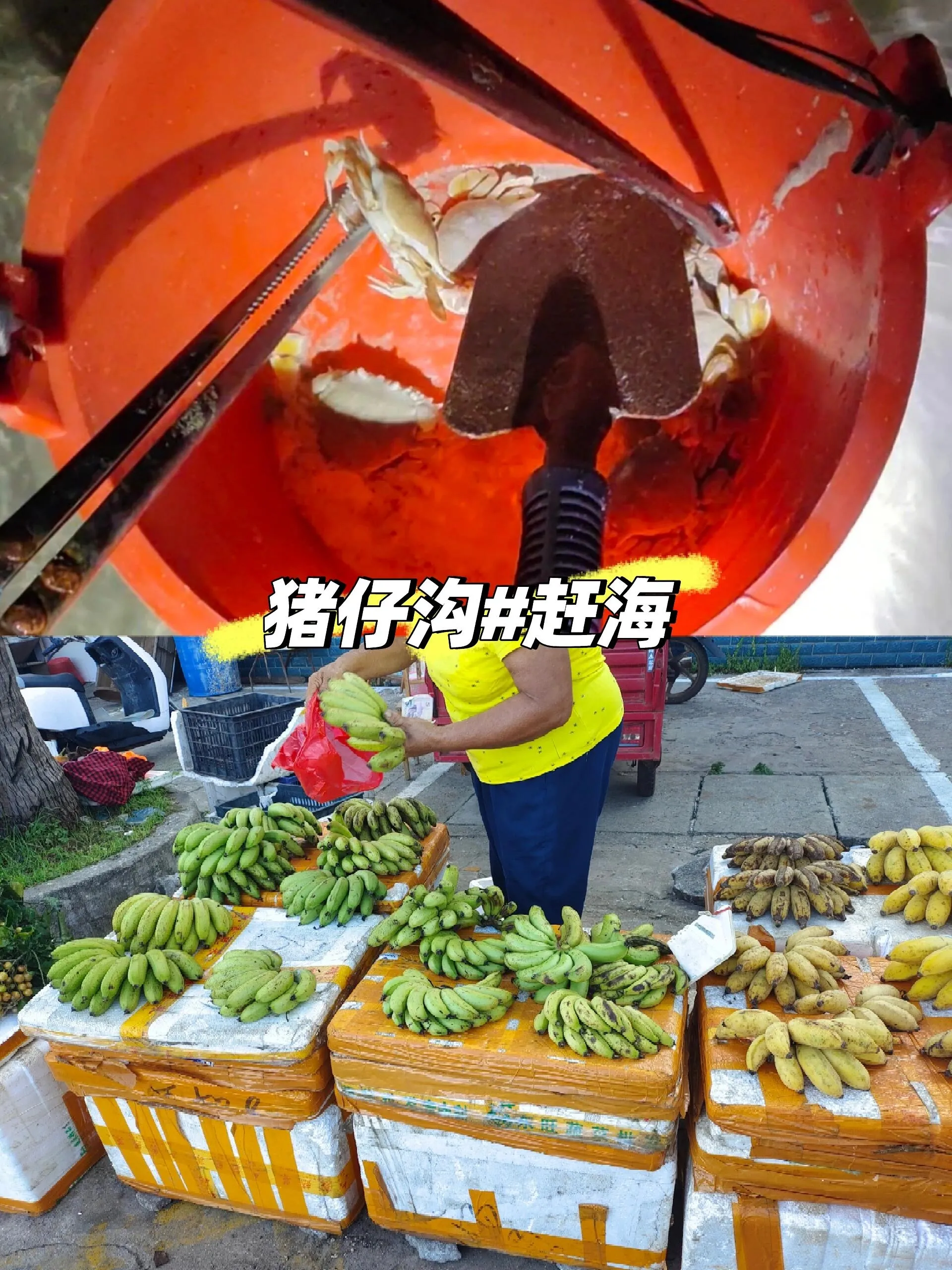 上午前往猪仔沟赶海。建议提前查看潮汐表,在退潮前2-3小时到达。这里可以捡到钉螺等海产,五彩滩一带螃蟹较多。