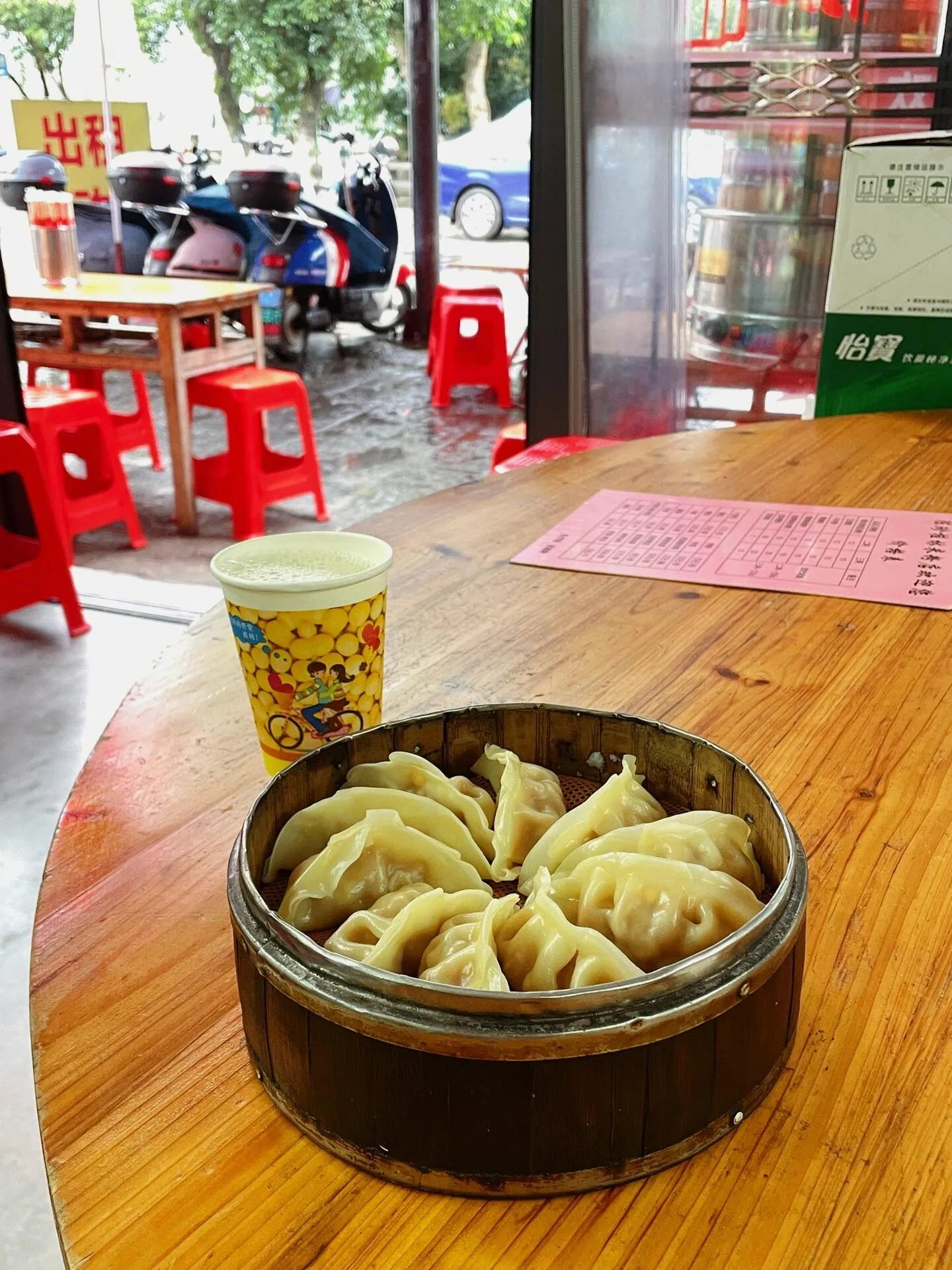 陈珍桂林米粉店,12元一笼的蒸饺,搭配豆浆是完美的早餐选择。位于西街尾端。