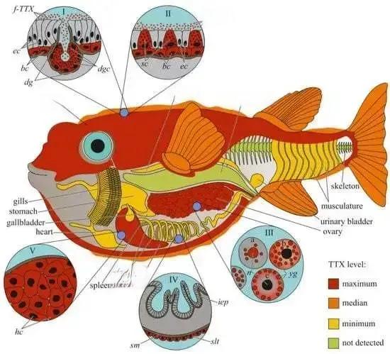 此外,在河豚胚胎孵化过程中,体内毒素含量随之增加,这表明河豚毒素是由其胚胎生成的。