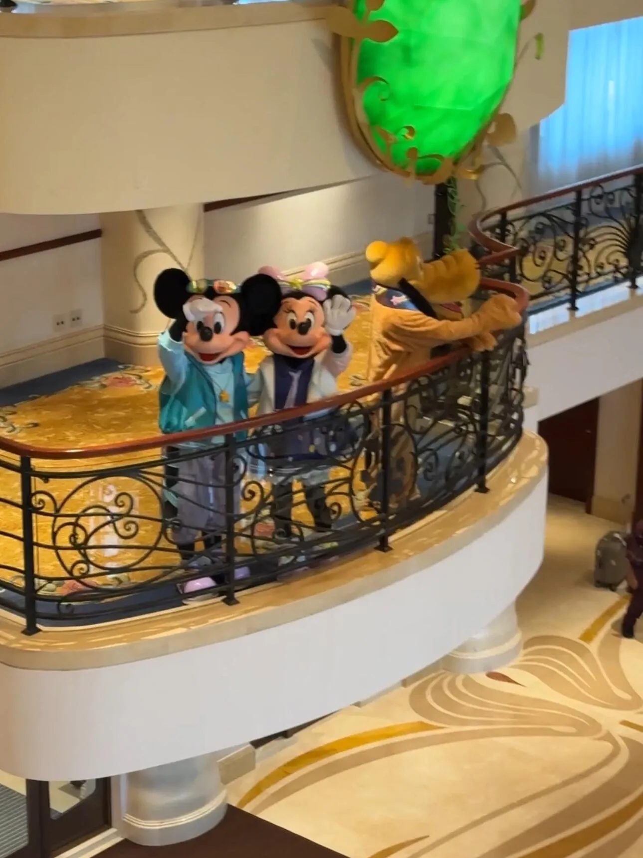 在酒店大堂合影是一项特别的体验。各种迪士尼角色都会出现,热情地与游客互动,工作人员还会协助拍照录像。这样就无需在园区排队就能与喜爱的角色零距离接触。