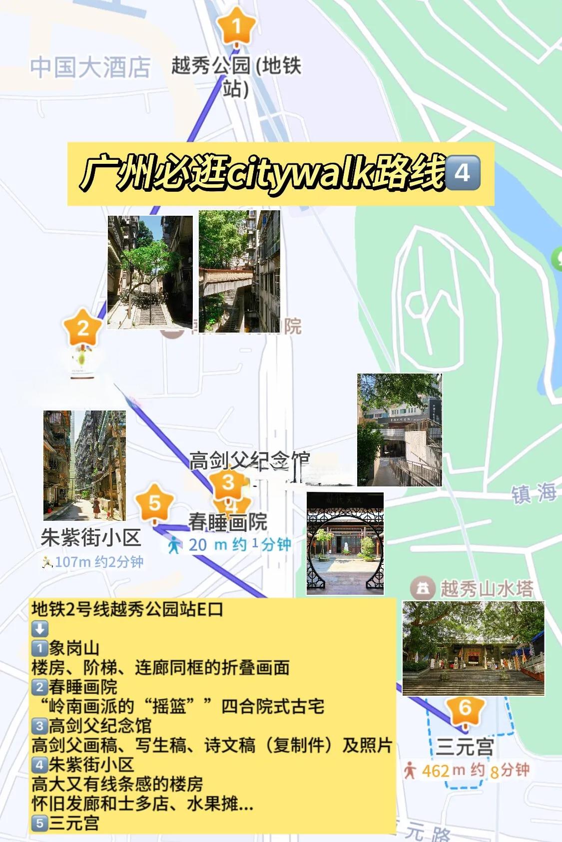 交通:搭乘地铁2号线到越秀公园站E口,步行500多米即可到达象岗山小区,之后按照路线游览即可。