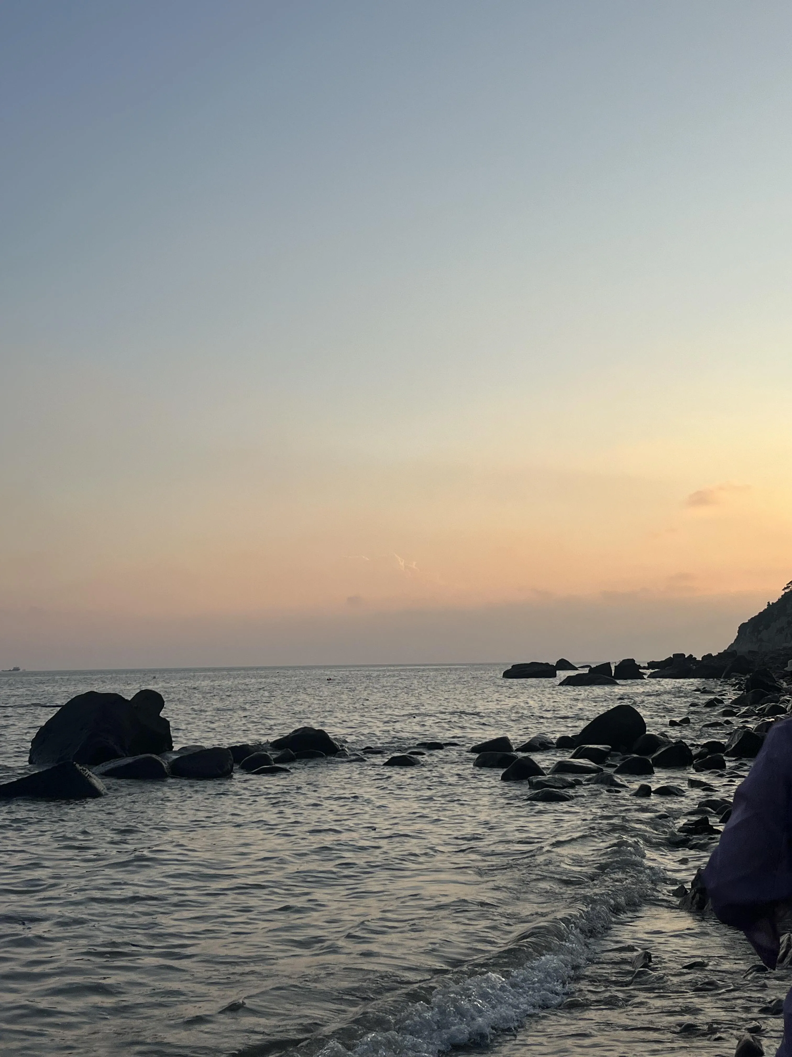 韭菜岙沙滩就在七彩洞头村对面,是免费的沙滩。 下午很热,也没有夕阳,所以我们没有下去。