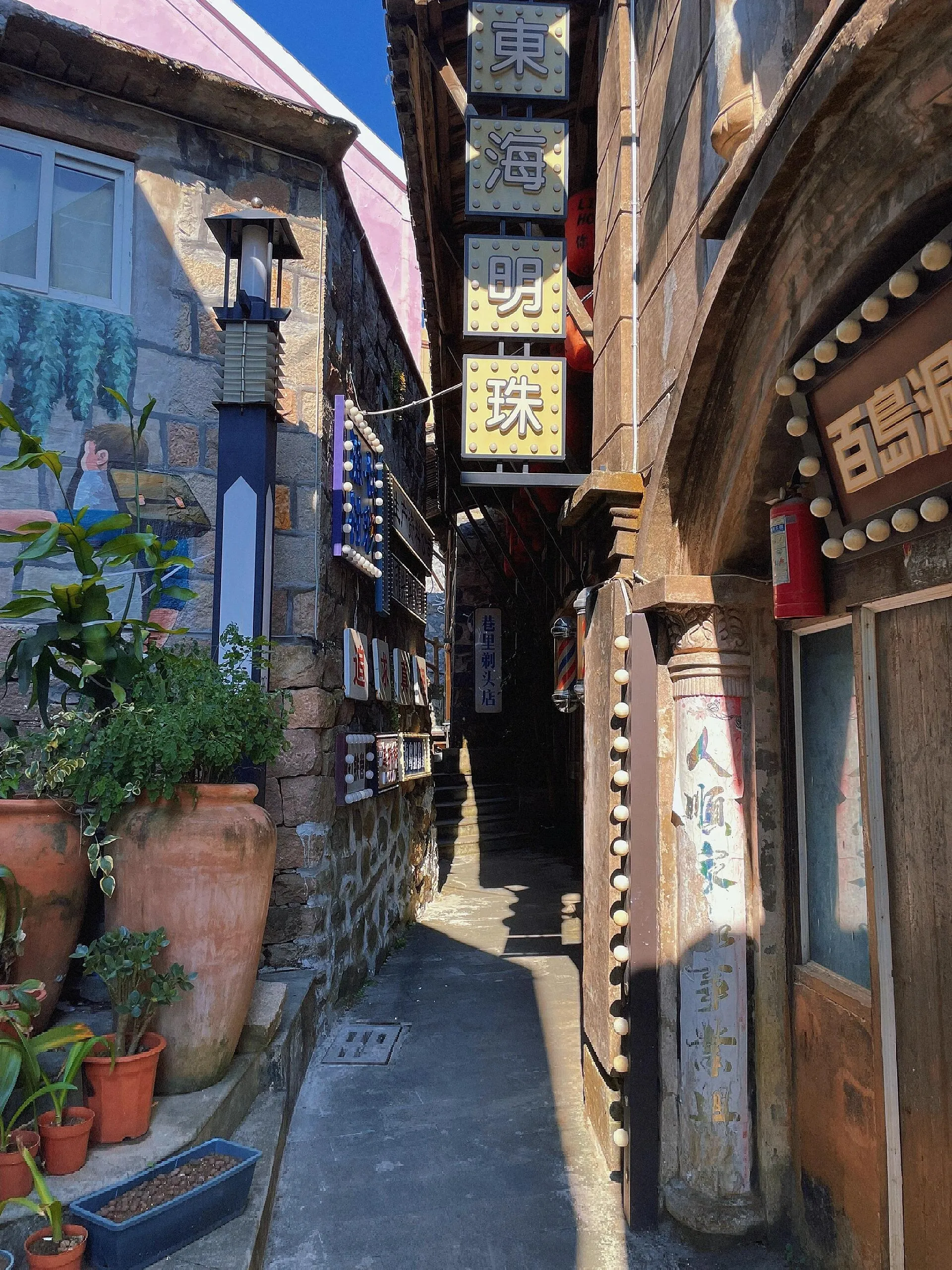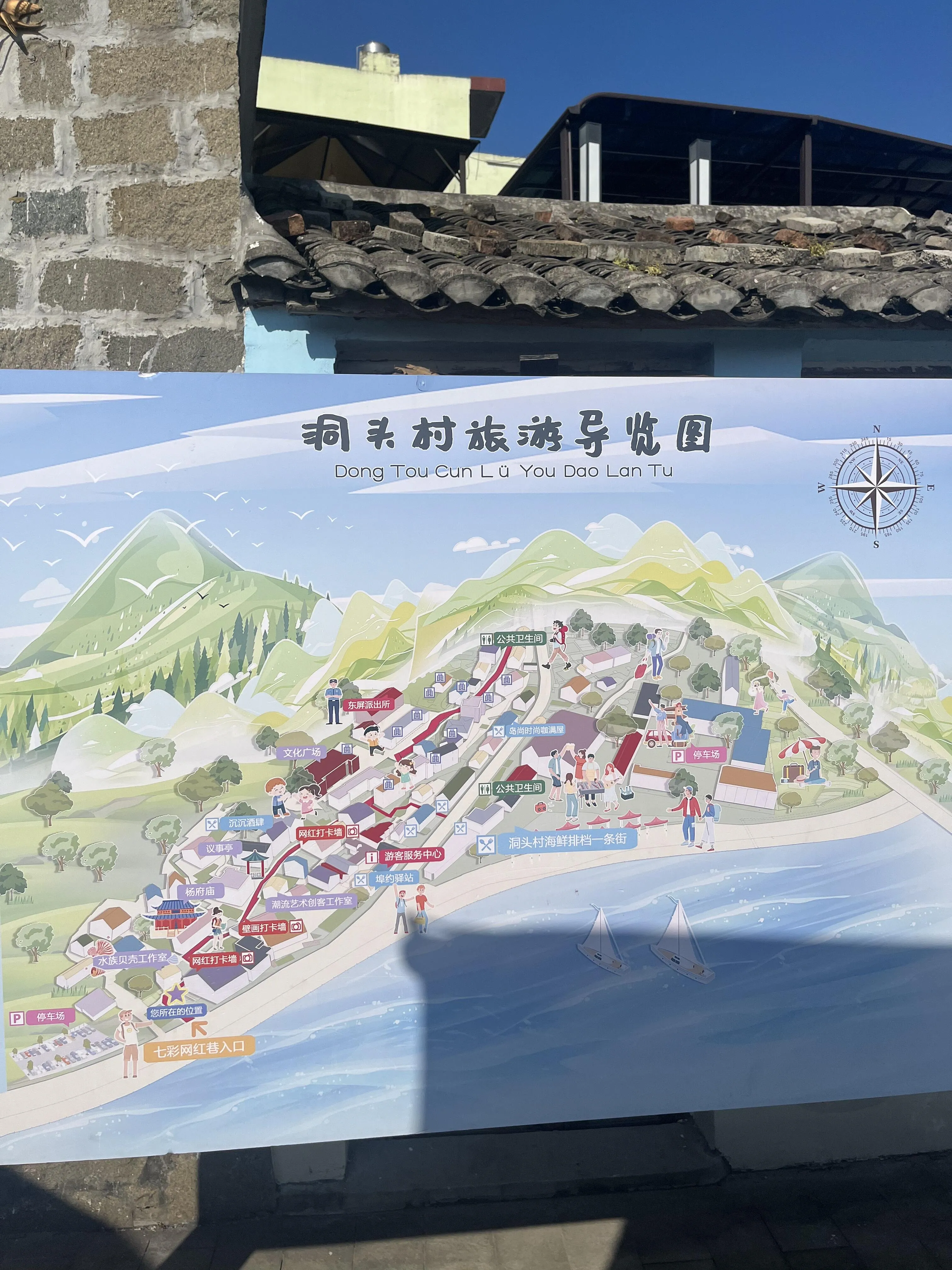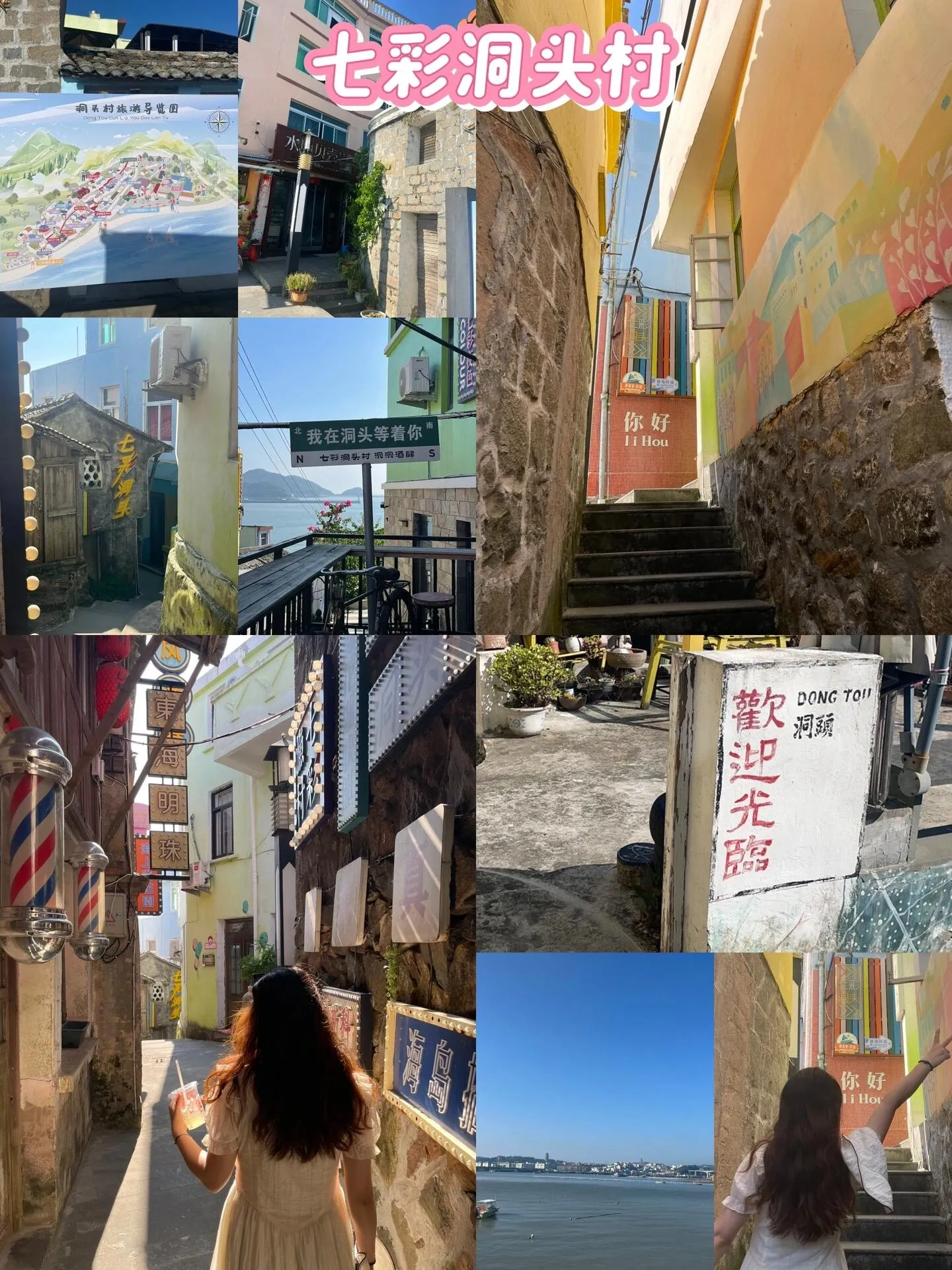 七彩洞头村可以导航到“水族贝壳工作室”进入,有免费停车场。 巷子里有涂鸦的彩色小房子和民宿,面朝大海,是个很出片的小渔村。很多人会去桥上拍照,不过我们只是开车路过。