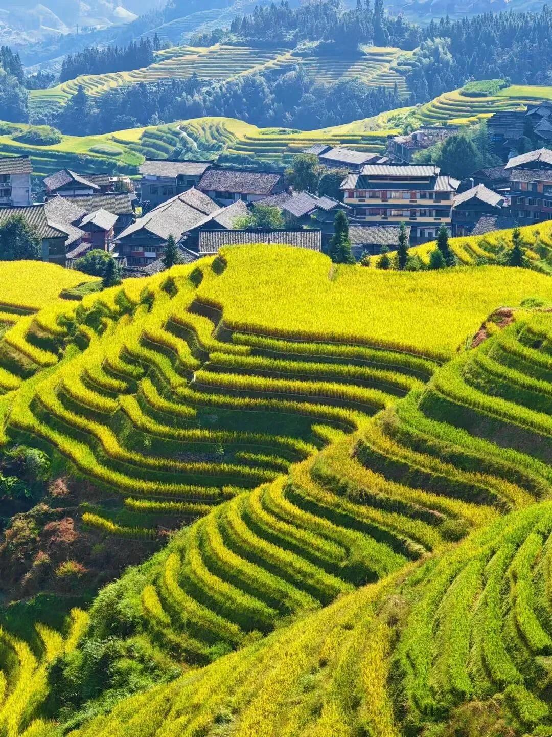 龙脊梯田:梯田景色壮观,可在千层天梯观景台欣赏日落。