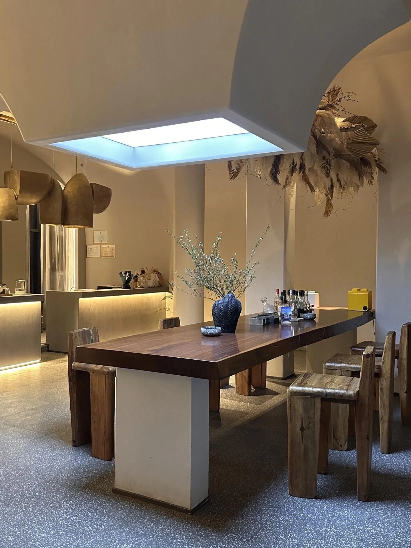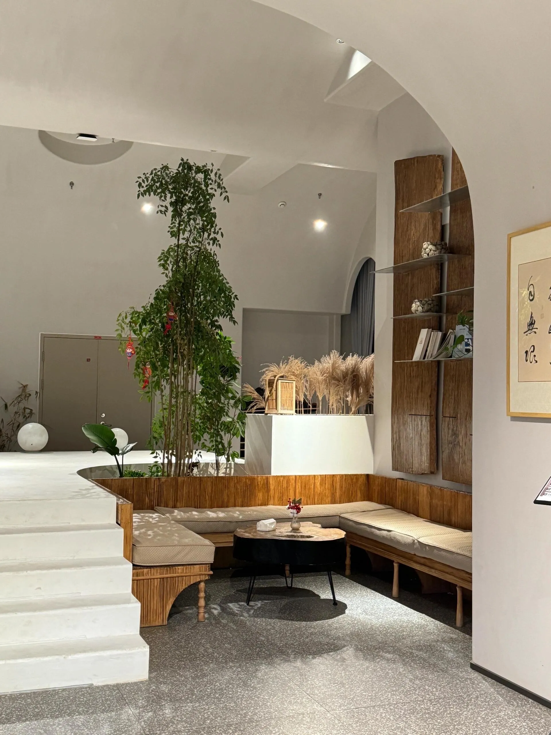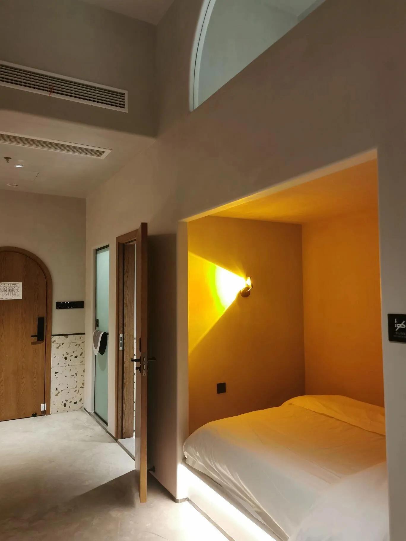 酒店的设计感十足,采用诧寂风格 ,既现代又不失温馨。拱形门洞的设计随处可见,整体环境非常适合拍照,随手一拍就能得到ins风格的大片。