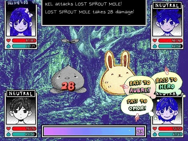 《OMORI》最令人称赞的地方在于它对心理健康议题的处理。 游戏通过主角的经历,探讨了抑郁、焦虑和创伤后应激障碍等心理问题 。主角Sunny在经历了一场悲剧后,陷入了深深的自责和恐惧之中,通过创造一个理想化的梦境世界来逃避现实。游戏中的各种谜题和挑战,实际上反映了主角内心的挣扎和冲突。这种将心理问题具象化的表现手法,不仅让玩家能够更直观地理解这些复杂的心理状态,也为心理健康议题的讨论提供了一个全新的视角。