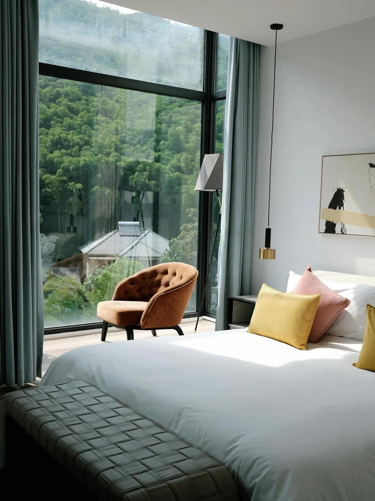楠麓荟民宿是一个让人迷恋的地方 , 融合了神秘的竹海与人间烟火气 。我入住的是2号楼的全景露台套房,超大的落地窗不仅让阳光随时随地洒进屋内,更让人可以无时无刻欣赏窗外的竹林与人家。