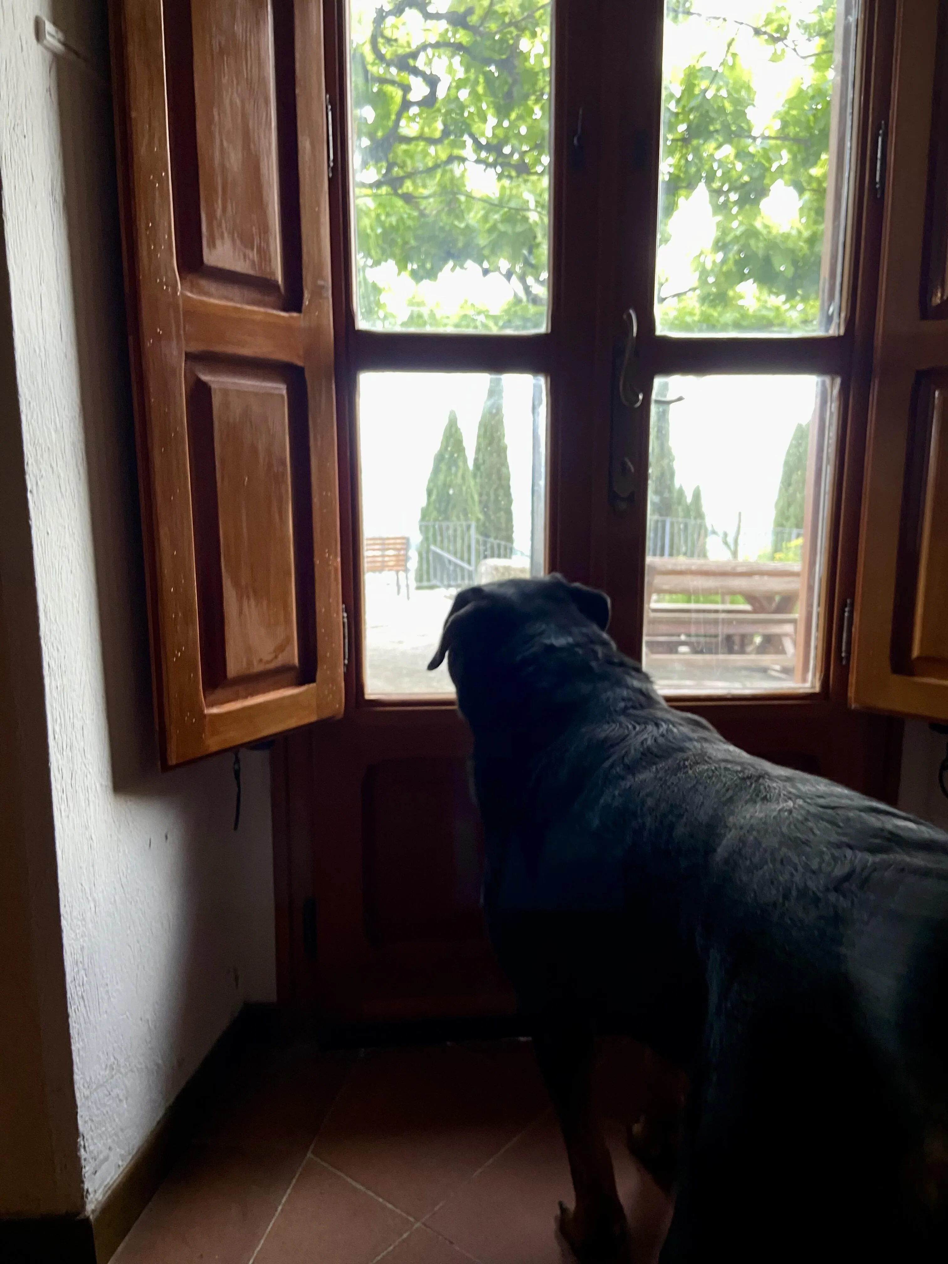 虽然出发前遇到了一些小波折,如朋友扭伤脚和差点误机,但这些都无法阻挡探索托斯卡纳的热情。当坐上开往村庄的公交车,看到蔓延的田野和彩色窗户的房子时,所有的不愉快都烟消云散了。抵达时,一只超大的罗纳威犬热情地迎接,而能俯瞰村庄和葡萄园的庄园更是让人惊叹不已。