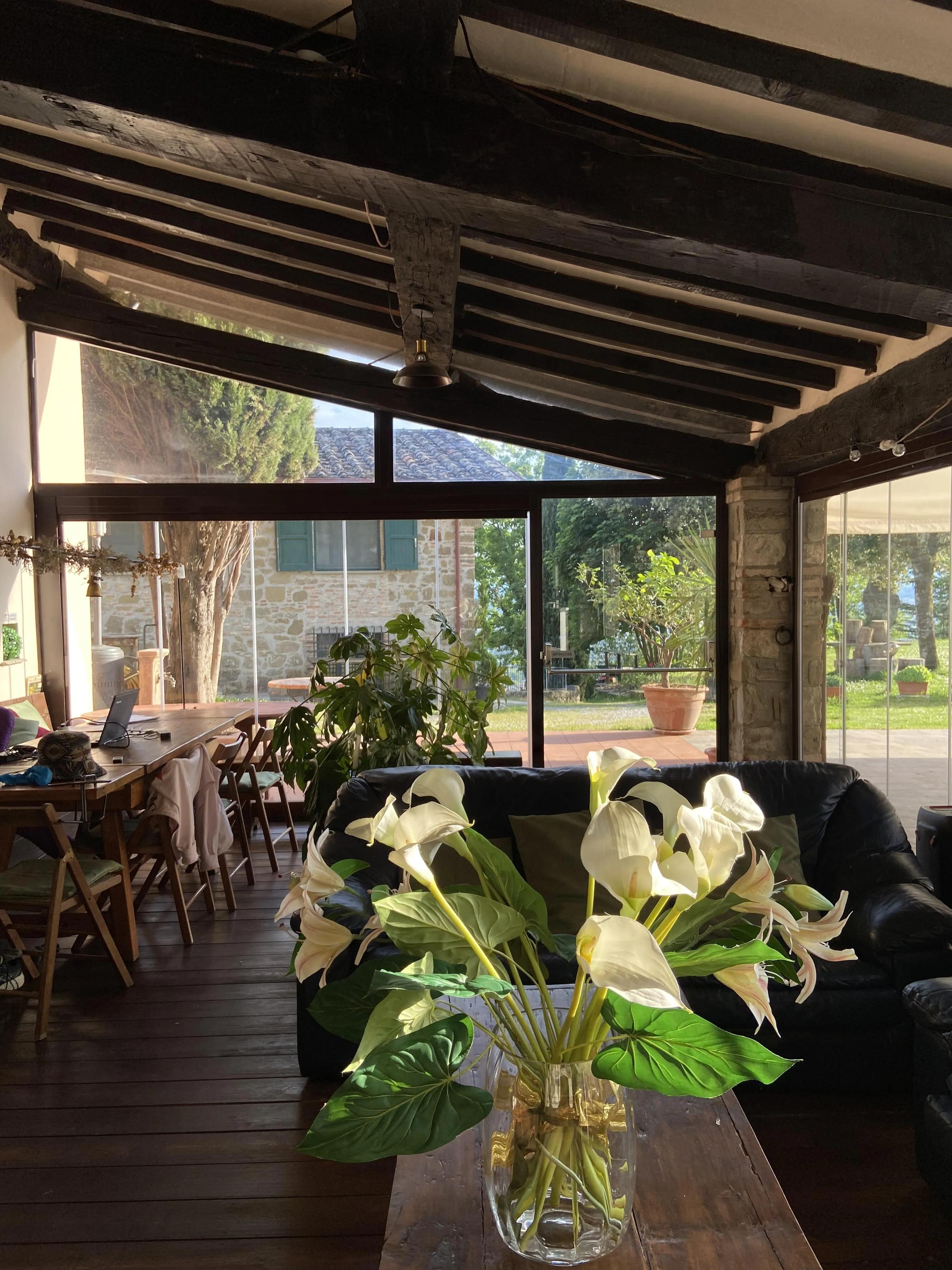 晚餐时光是一天中最热闹的时刻。客人们会做中国菜,主人则会邀请朋友来共进晚餐。大家一边品尝美食,一边分享各自的故事。 主人的经历与电影《托斯卡纳艳阳下》的女主相似 ,她走过很多地方,但最终选择了这里的生活方式。她喜欢清晨湿润新鲜的空气,远处的湖泊,以及偶尔在橄榄林里遇到的小鹿。