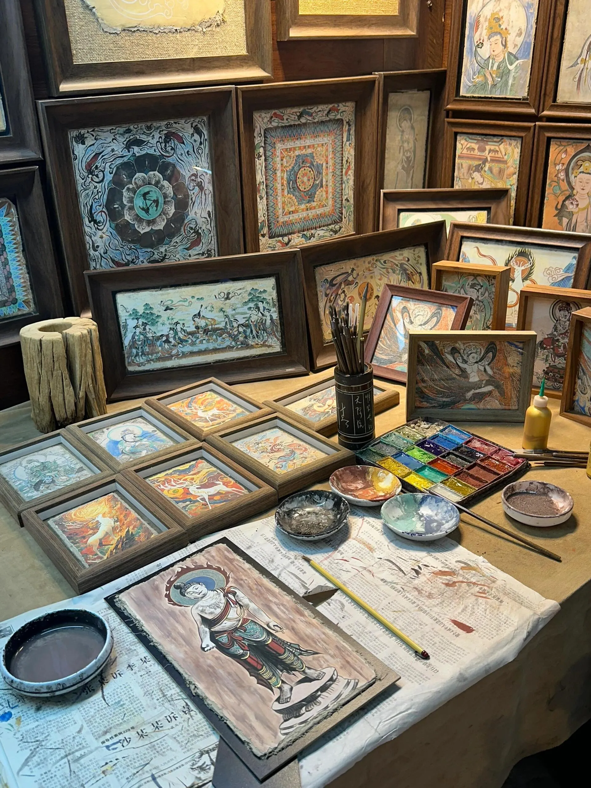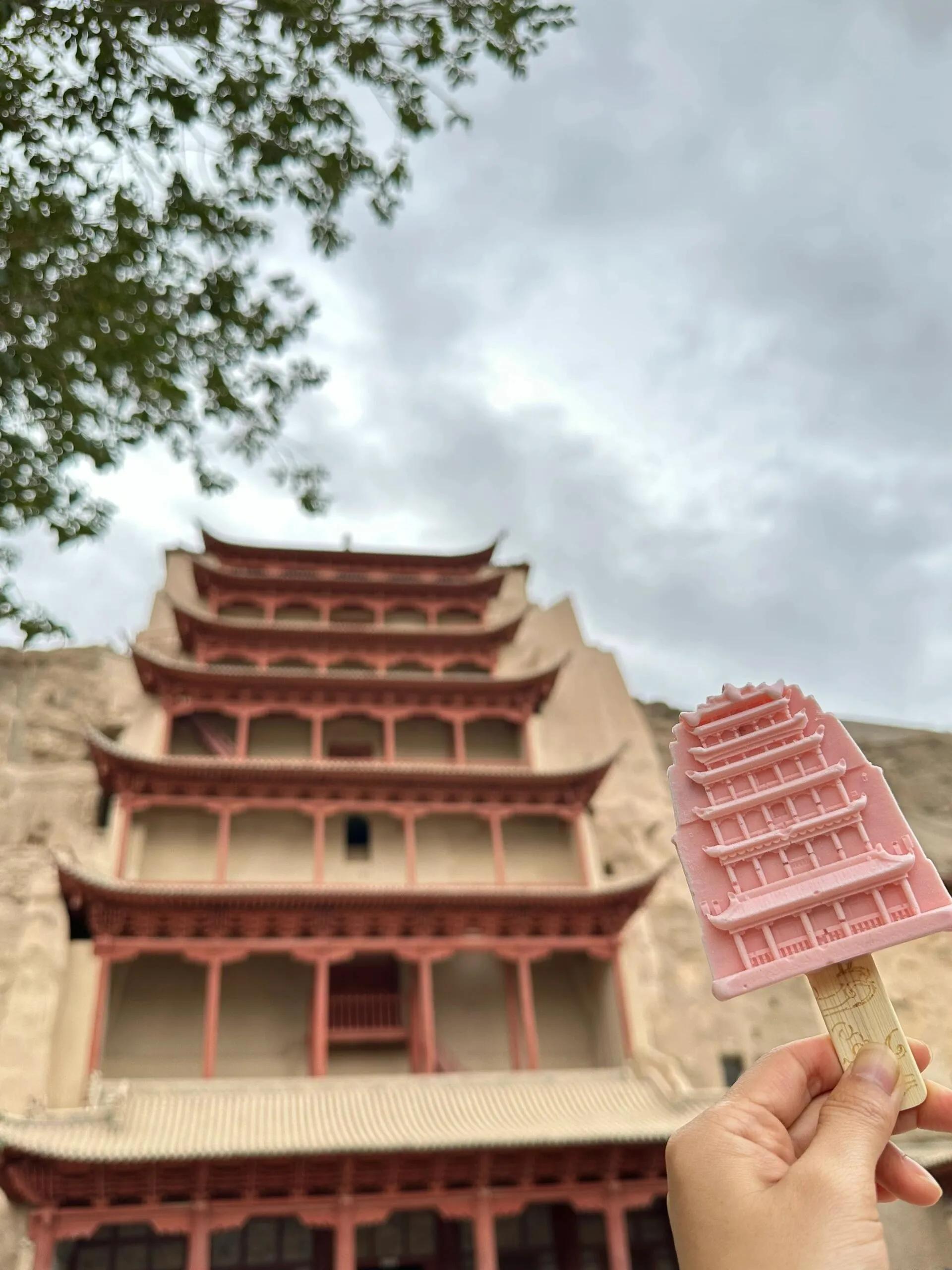 莫高窟塔楼是拍照的最佳机位,坐在台阶上拍游客纪念照,效果很满意。在敦煌建议多住一晚,一定要去逛沙洲夜市,非常有特色,很多地方美食和工艺品,人很多很热闹,也很平价。大漠烤鱼一定要尝试,冰箱贴只要5元,很适合买作纪念品。