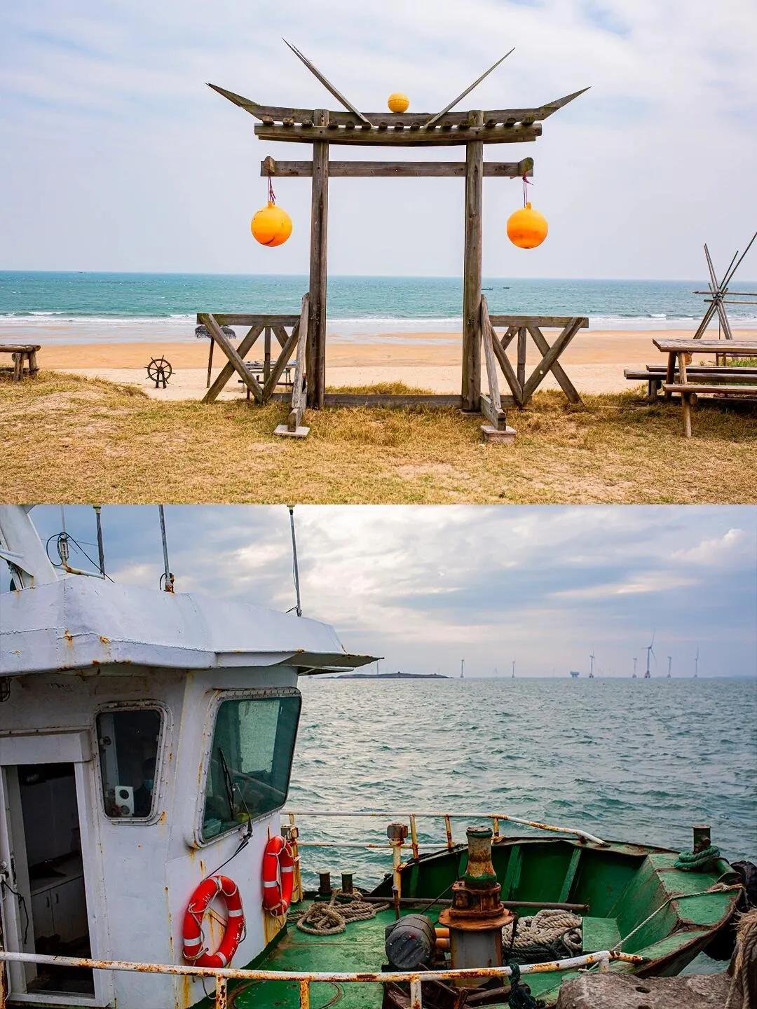 岛上的沙滩是一个放松身心的好地方。你可以在这里荡秋千、泡茶,欣赏日出日落的美景。傍晚时分,夕阳缓缓下山,远处山上的风车剪影尤为迷人。