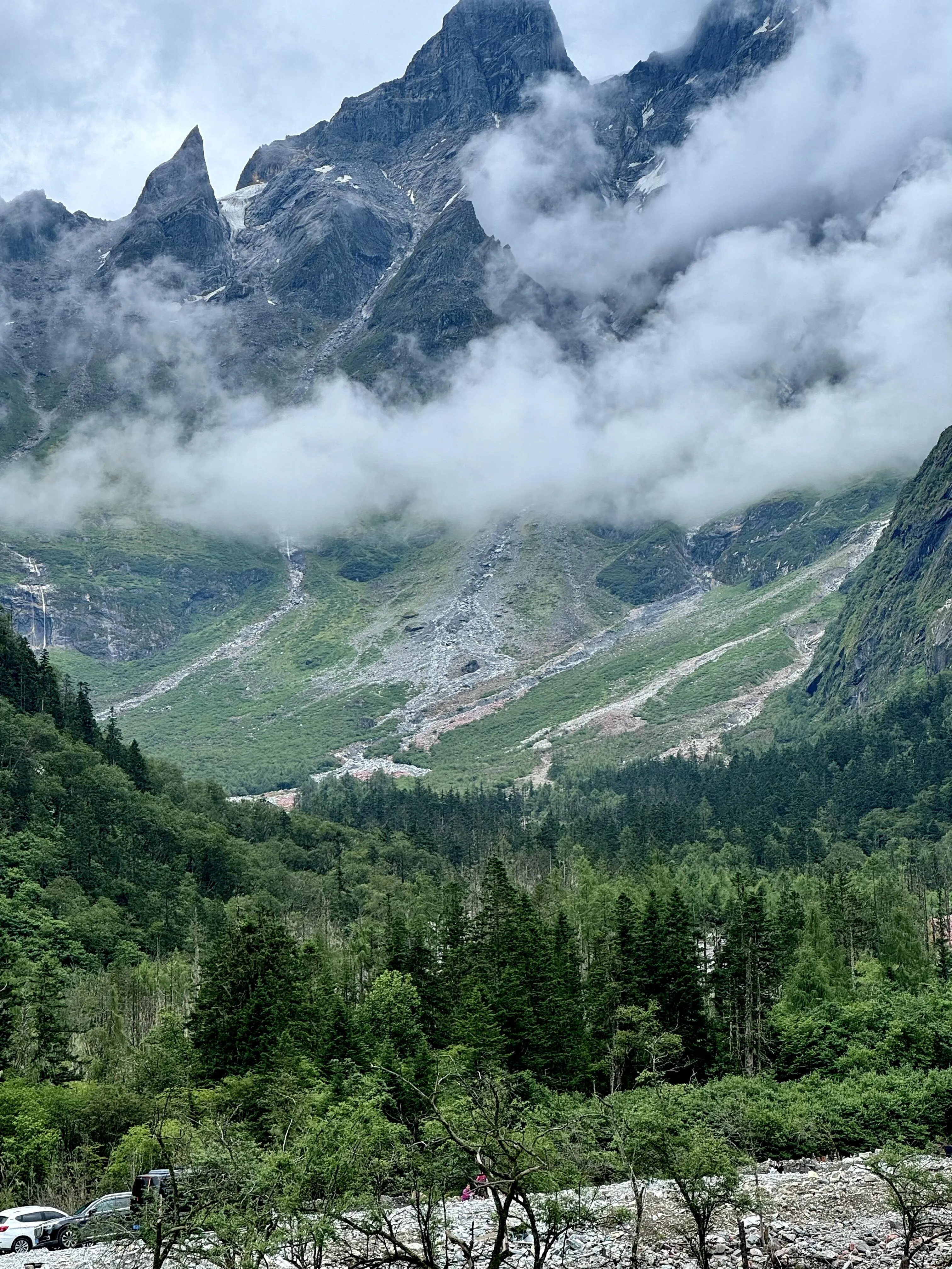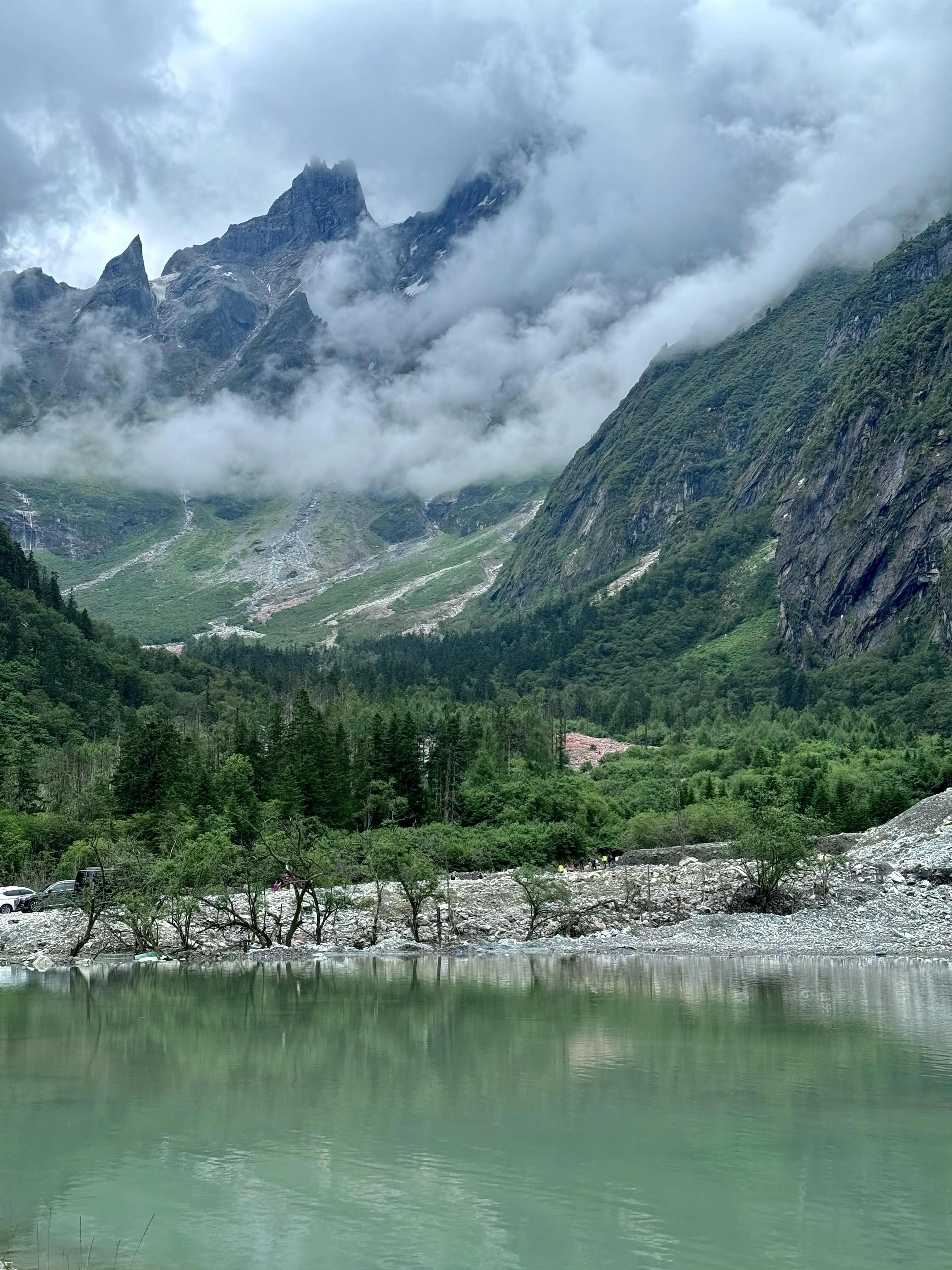在理小路的后半段,有一处名为“大二普”的路段 ,也是许多游客停留打卡的地方。在这里可以观赏到雪山、冰川、森林、河谷草甸、牧场等高山景观,还可以近距离观看大小玛雅峰。虽然一天时间不能深度探索,但打卡拍照已足够满足游客的好奇心。