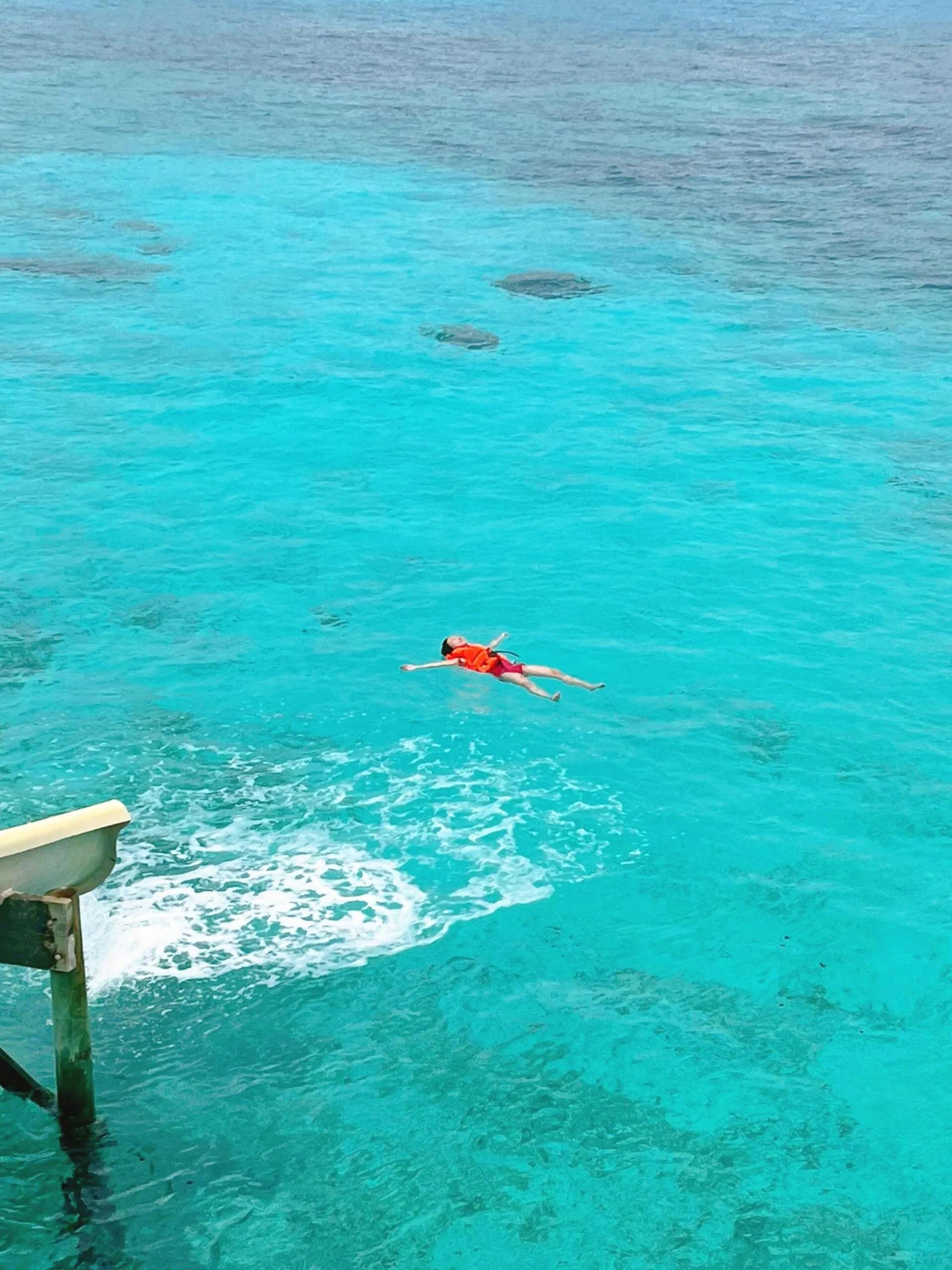 水上别墅周围的海域鱼类较少,主要是一些小鱼群。想要看到更多海洋生物,需要去到位于SPA馆附近的绝佳浮潜区。