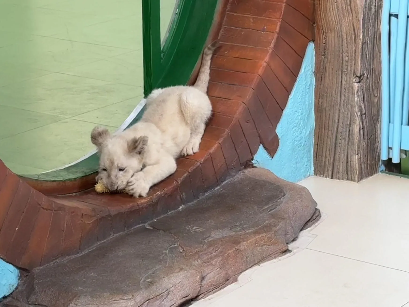 第四站是萌宠幼儿园。乘坐代步车到奇趣乐园站下车,前往幼儿园的路上会经过树懒、乌龟和食蚁兽的展区。幼儿园里有四只猛兽幼崽,除了较为高冷的花豹,其他幼崽都非常可爱。3点多到达时人不多,观赏体验很好。