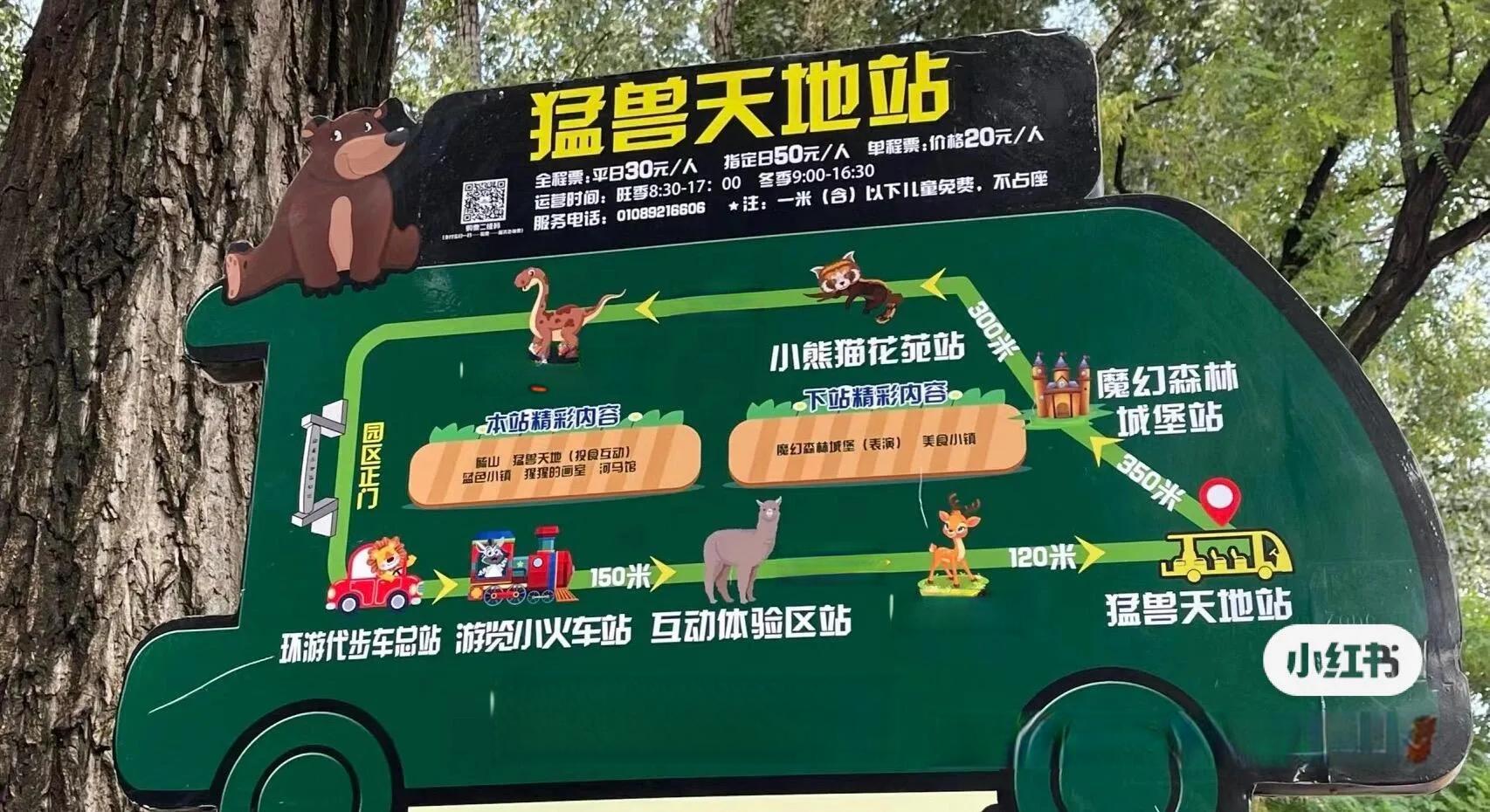大约10点半抵达动物园。通过小程序购买150元门票入园。入园后右手边50米处的游客服务中心可存包。对面是代步车站点,可在此换取手环并乘坐代步车。节假日单日不限次车票50元,非常推荐。相比租用电瓶车更经济实惠,且确实能节省不少步行路程。部分站点可能需要短暂排队候车。