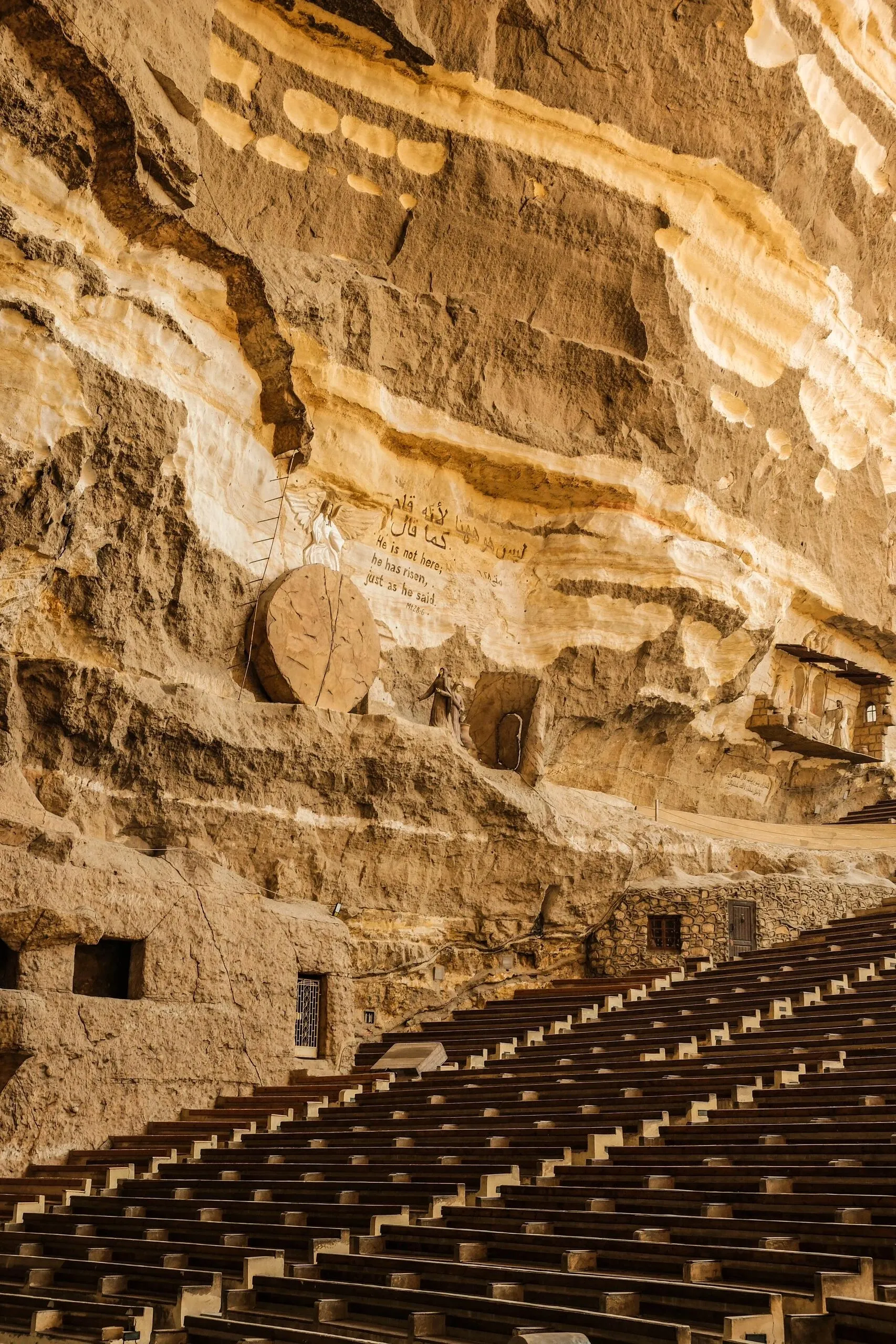 通往教堂的路上一路充斥着恶臭,和路的尽头这座百年洞穴教堂仿佛两个世界。