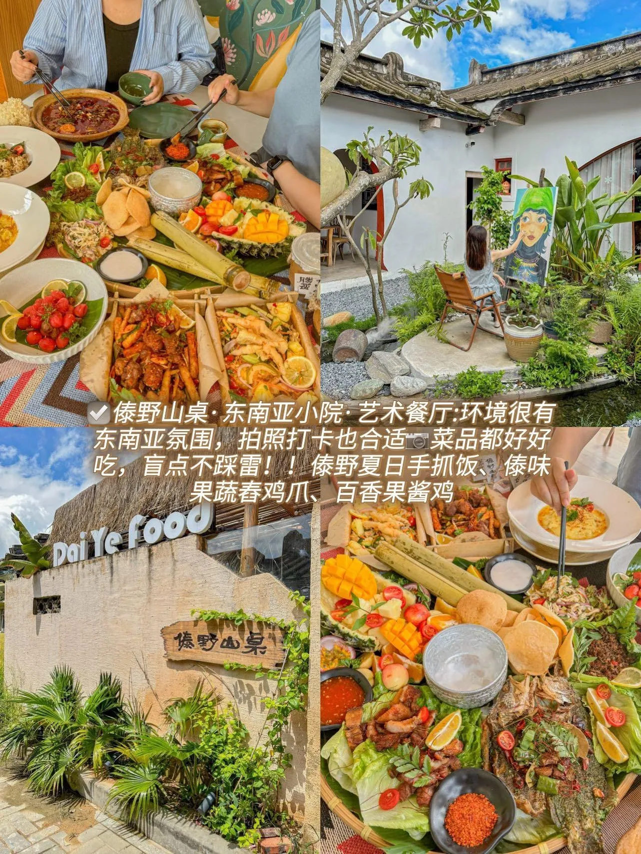 这家餐厅环境充满东南亚风情,很适合拍照打卡。菜品都很美味,可以放心点餐。特别推荐傣野夏日手抓饭、傣味果蔬舂鸡爪和百香果酱鸡。