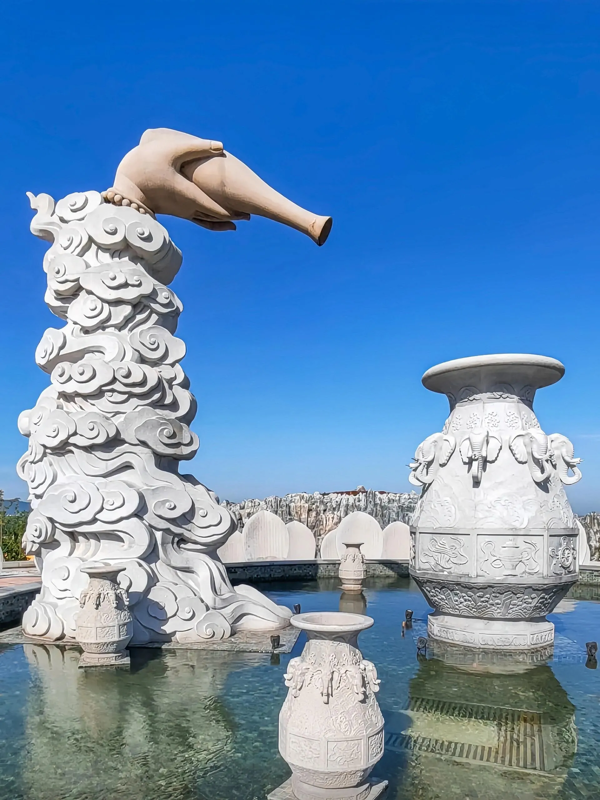 溧水东庐山鸡鸣寺下院,又名观音寺,始建于元代,历史悠久,香火鼎盛。新建的观音寺背倚东庐山,面朝中山湖,乃是百里秦淮之源头。寺庙由下至上依次分布着观音洞、净瓶广场、送子观音像、半身大佛以及观音禅寺。建议参观路线从上往下走。