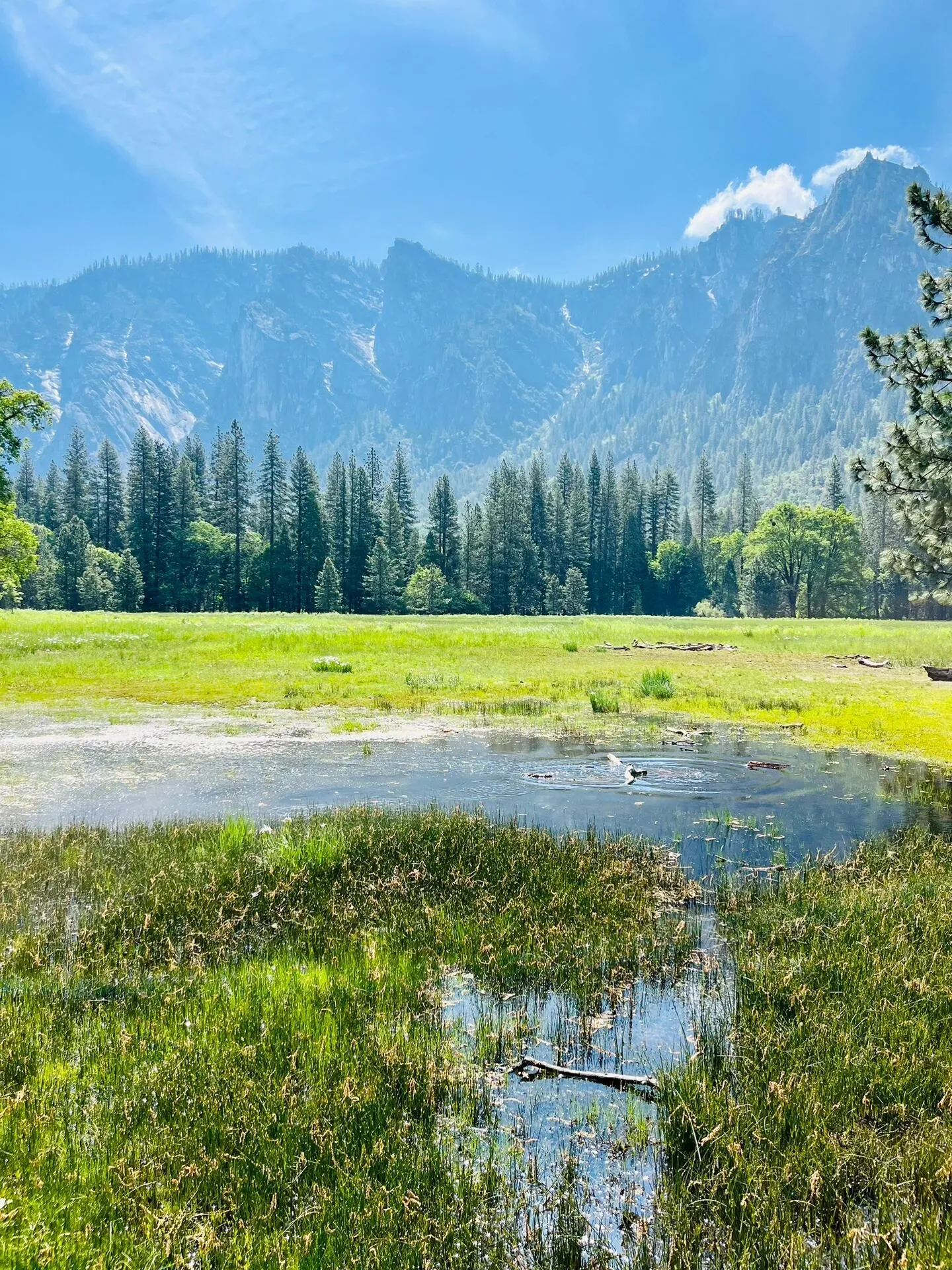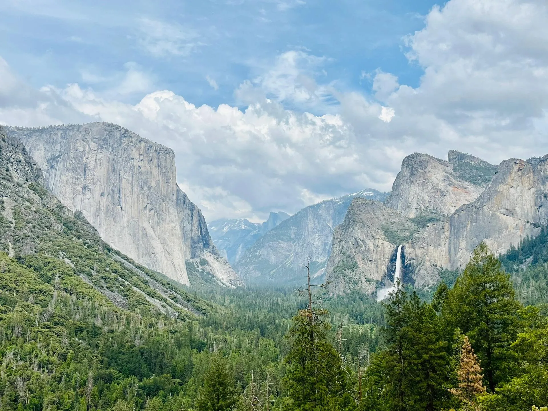 Yosemite Valley:一眼看遍几个代表打卡点:半圆顶(Half Dome)、新娘面纱瀑布(Bridalveil Fall)和酋长岩(El Capitan)。