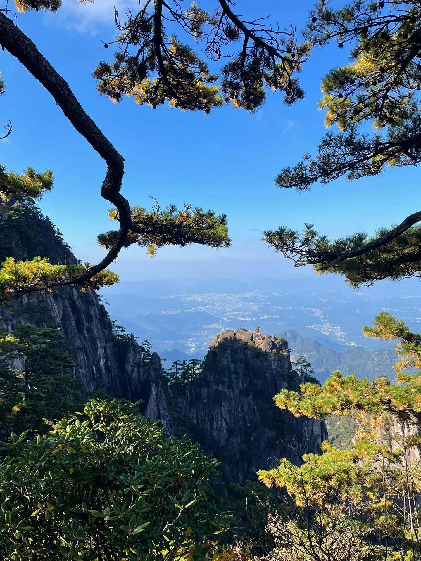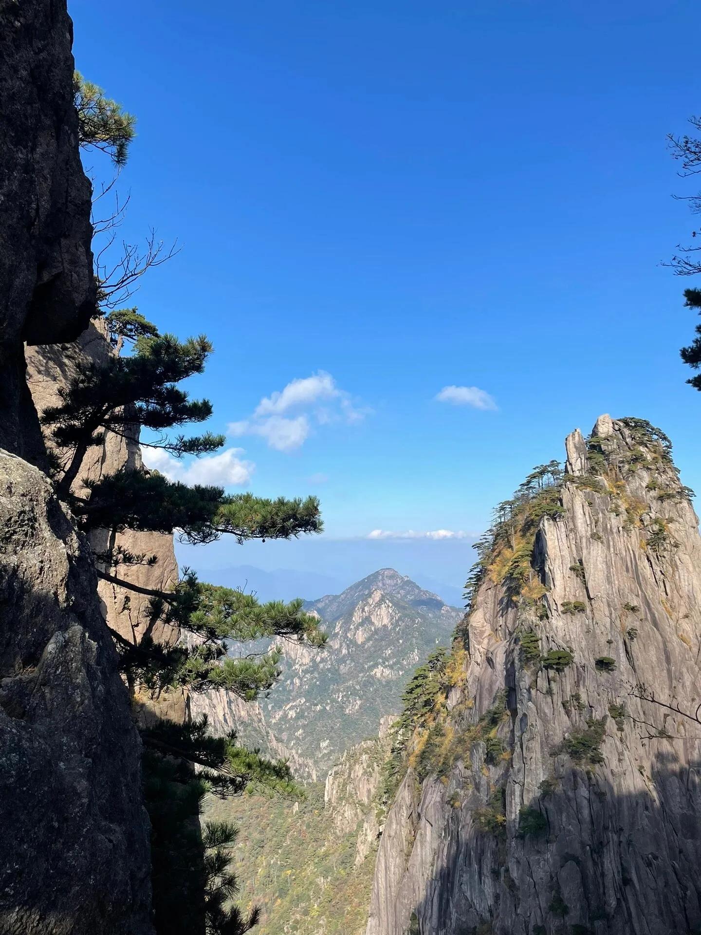 下午2:00从南大门(云谷索道/白鹅岭)出发,依次经过始信峰、黑虎松、梦笔生花、猴子观、西海大峡谷一环二环,最后乘坐网红小火车直达光明顶,大约5:40到达。