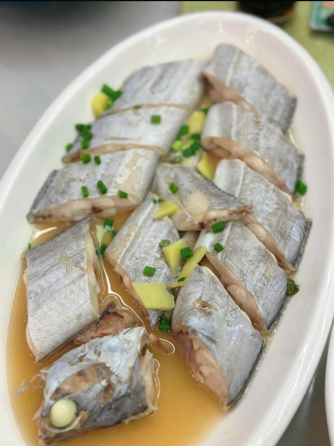 清蒸带鱼是舟山的骄傲,以最简单的清蒸方式呈现。鱼肉细嫩如丝,搭配几片姜丝提鲜去腥,保留了最纯粹的海洋风味,清而不淡,鲜而不腥。