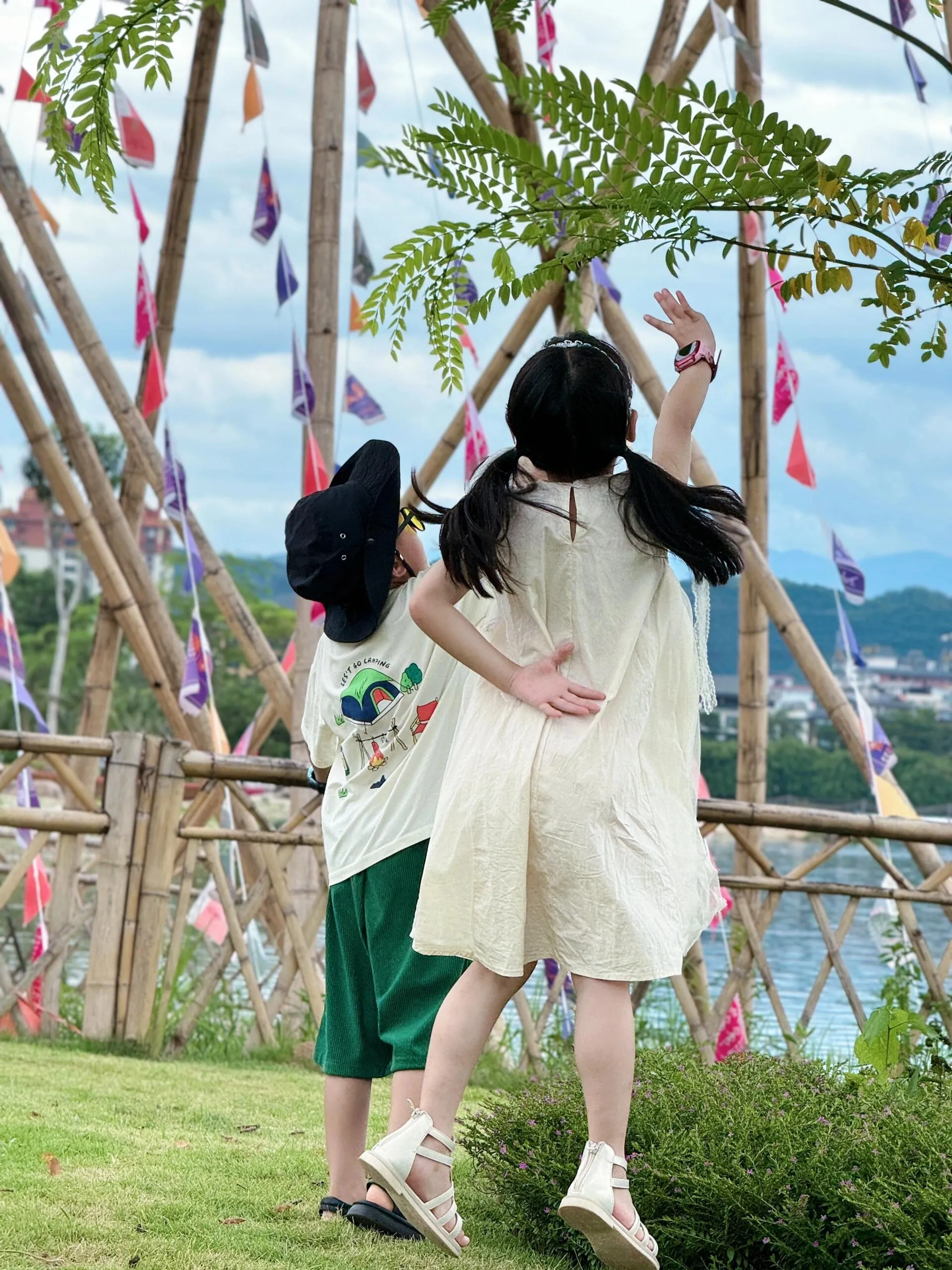 午饭后,我们步行前往傣族园参加下午1:30的泼水节。赶摆距离傣族园很近,步行只需约8分钟。建议提前购买门票, 85元包含门票和往返电瓶车。 入园后可以免费领取泼水盆,园内有收纳柜可以存放随身物品,活动结束后还有沐浴更衣室。整个泼水活动大约持续40分钟,包括泼水和蹦傣迪,孩子们玩得不亦乐乎,完全不想离开。温馨提示:一定要注意防晒!