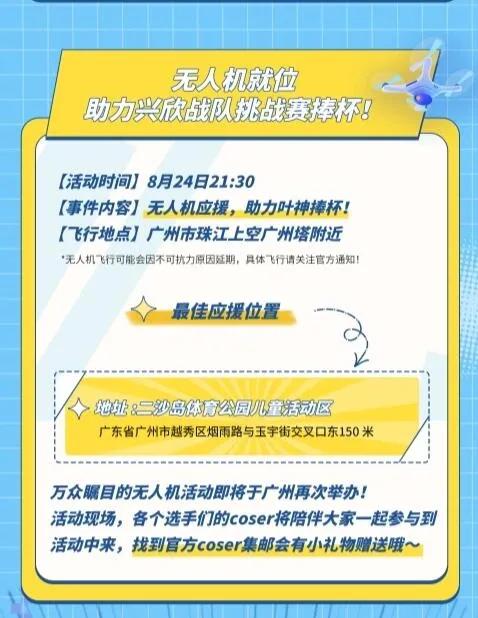 有无人机表演。最佳观赏位置:二沙岛体育公园儿童活动区。找到官方coser集邮还有小礼物送哦。