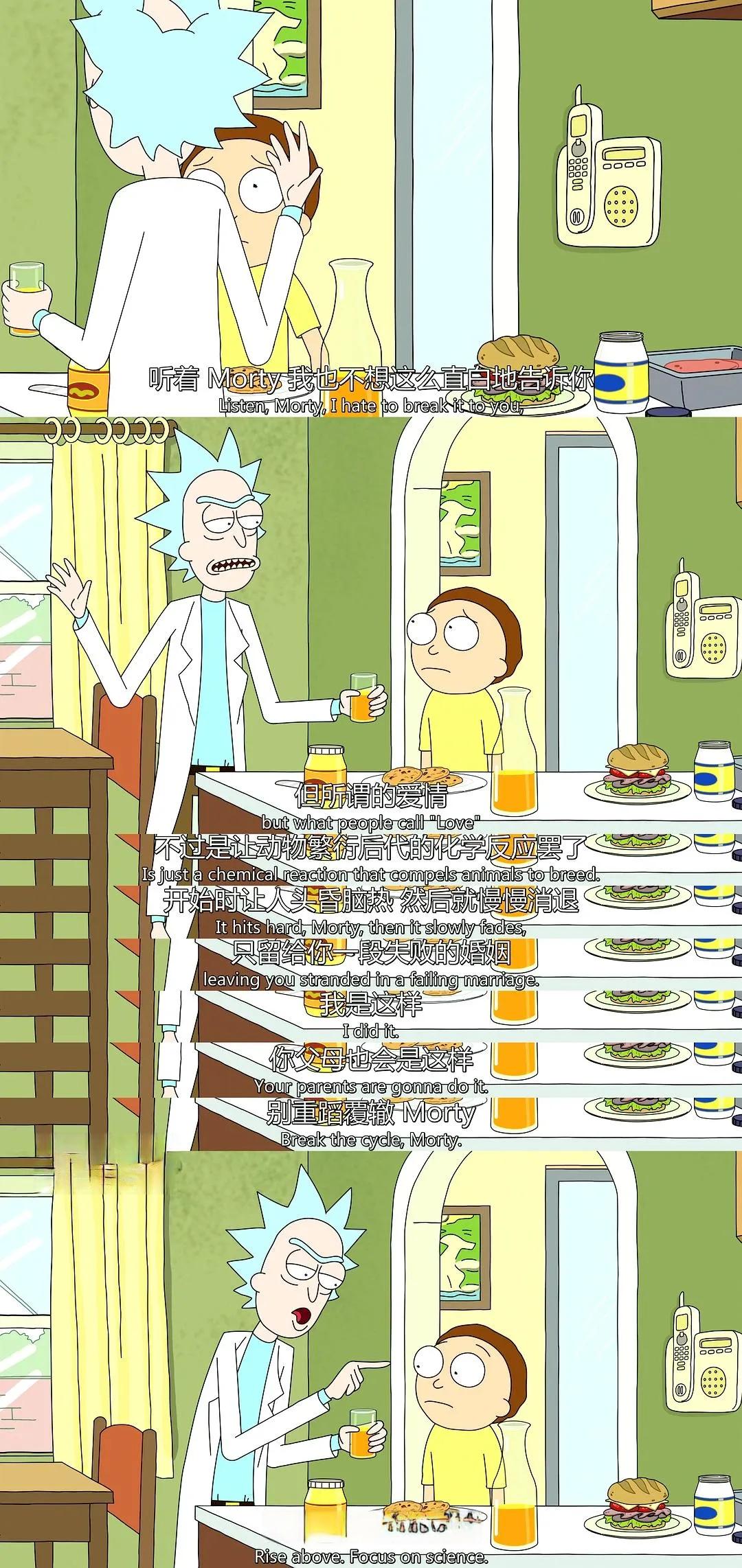 更令人称道的是,《瑞克和莫蒂》在轻松幽默的外表下,探讨了诸多深刻的哲学问题。 存在主义、虚无主义、荒谬主义等哲学思想贯穿全剧。 例如,瑞克这个角色就体现了存在主义的某些特征。他看透了人生的无意义,却又不得不在这个无意义的世界中继续生活。他的口头禅“wubalubadubdub”在“鸟语”中的意思是“我很痛苦,请救救我”,这恰恰反映了他内心的孤独和痛苦。