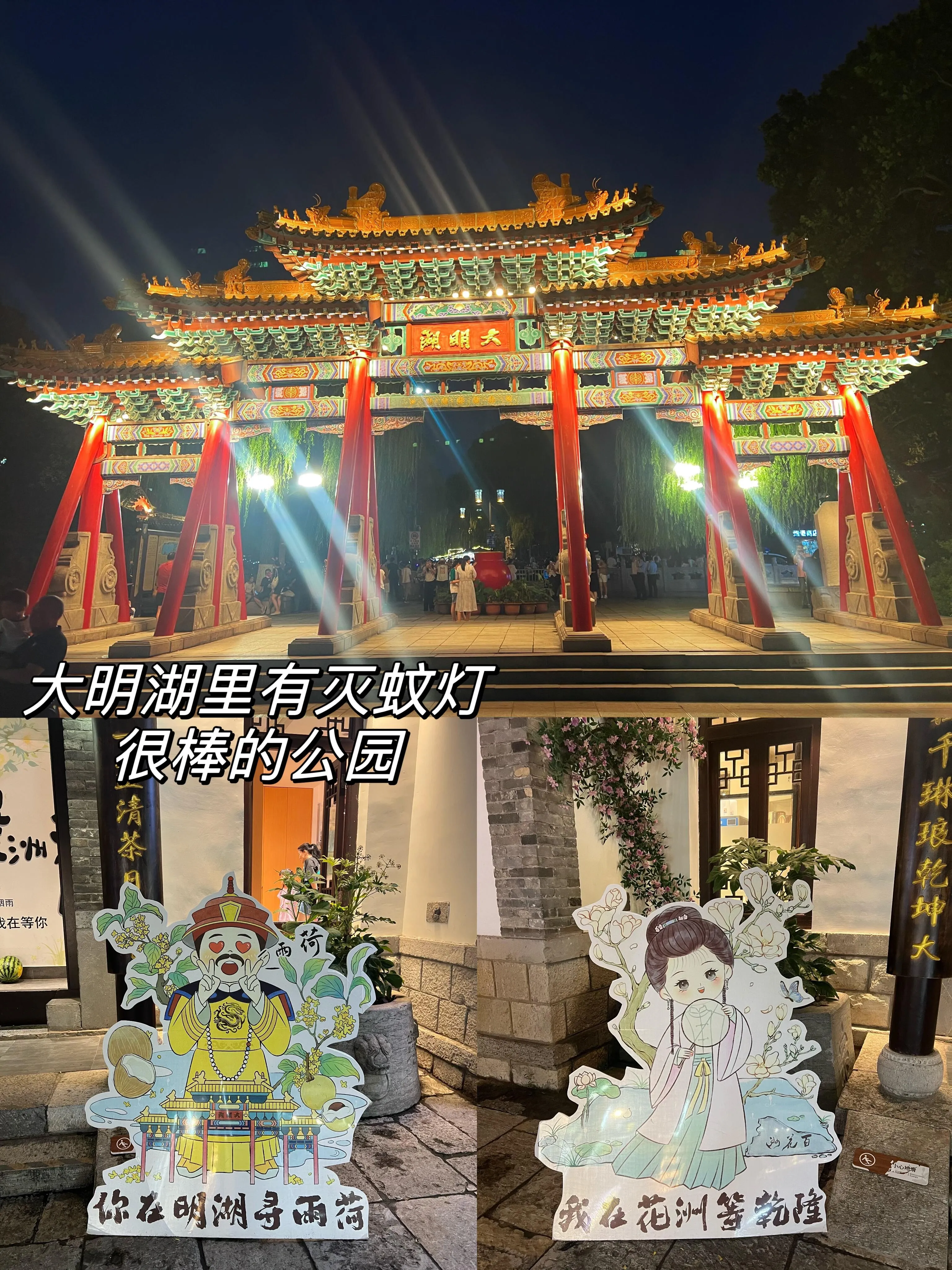大明湖公园是济南必打卡的景点之一。 7月份,荷花盛开,湖面上一片粉红,美不胜收。白天游船可以欣赏到更加赏心悦目的景色,而夜晚则可以欣赏喷泉和灯饰,游船价格也会更加实惠。