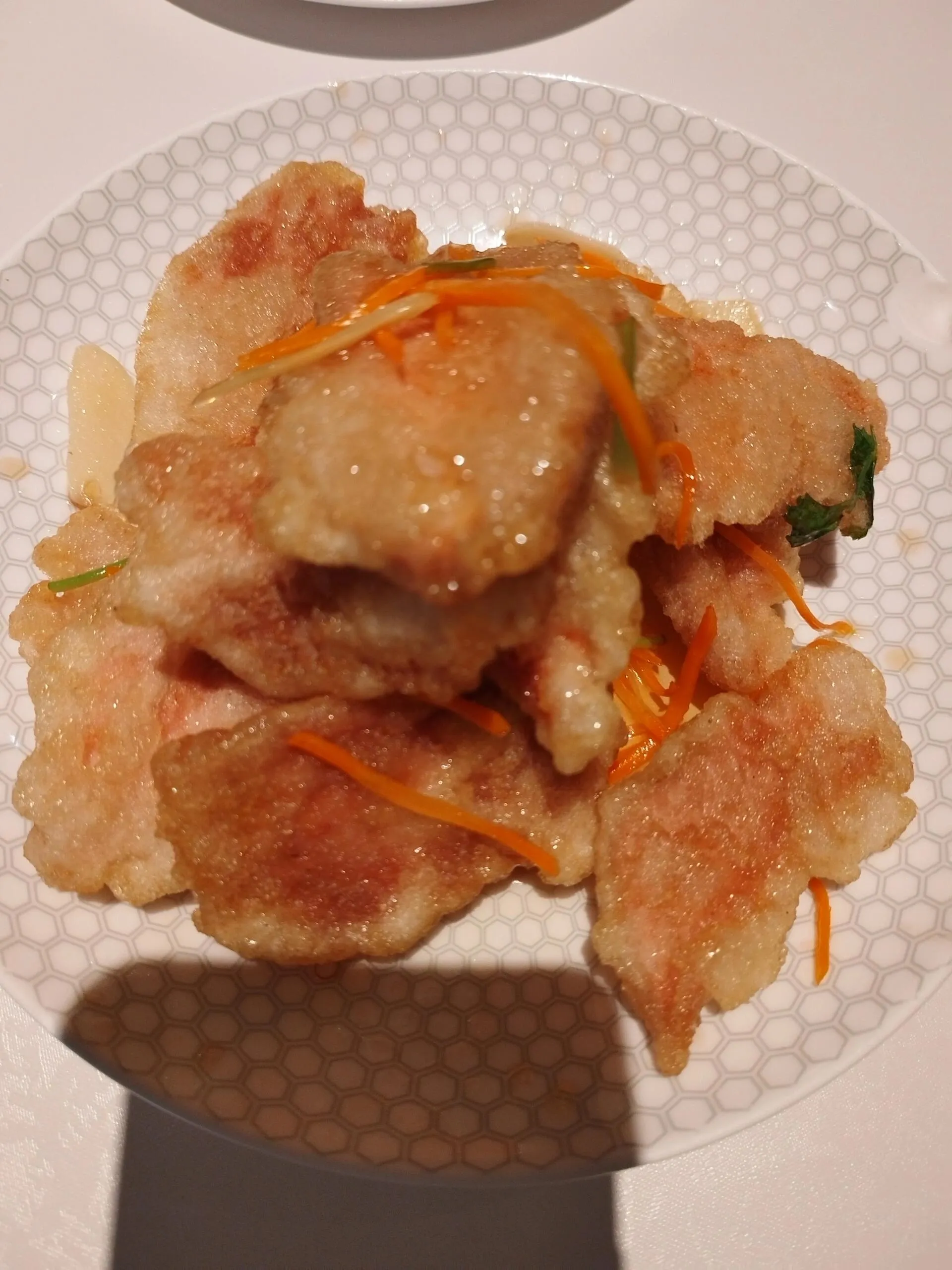 午餐时分,在中央大街的“老厨家”品尝了东北名菜锅包肉。 金黄酥脆的外皮裹着鲜嫩多汁的肉,酸甜适口,搭配着点缀其间的胡萝卜丝,口感丰富。“老厨家”氛围浓厚,颇受欢迎。