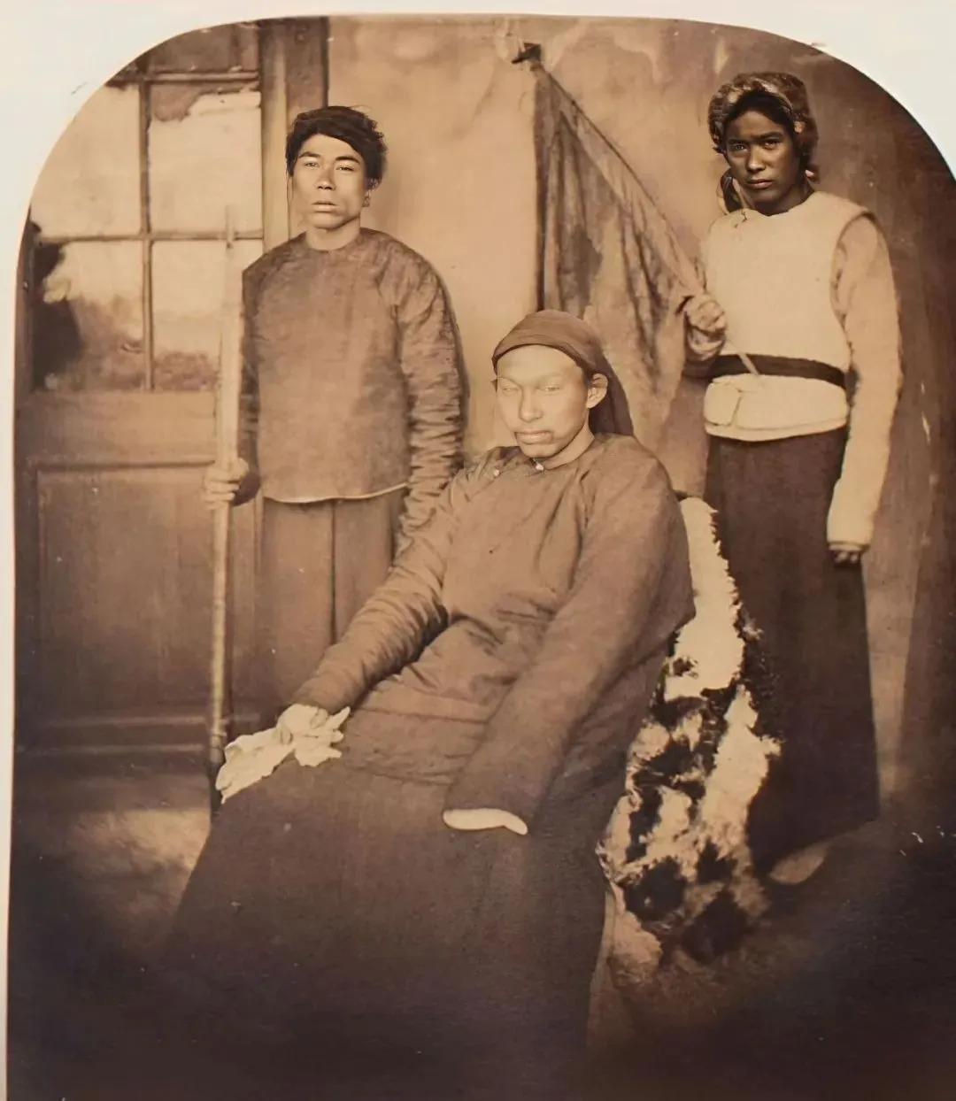 如今公开的唯一一张太平天国人物照片展示了太平天国 戴王黄呈忠(中)及其部下 的形象。