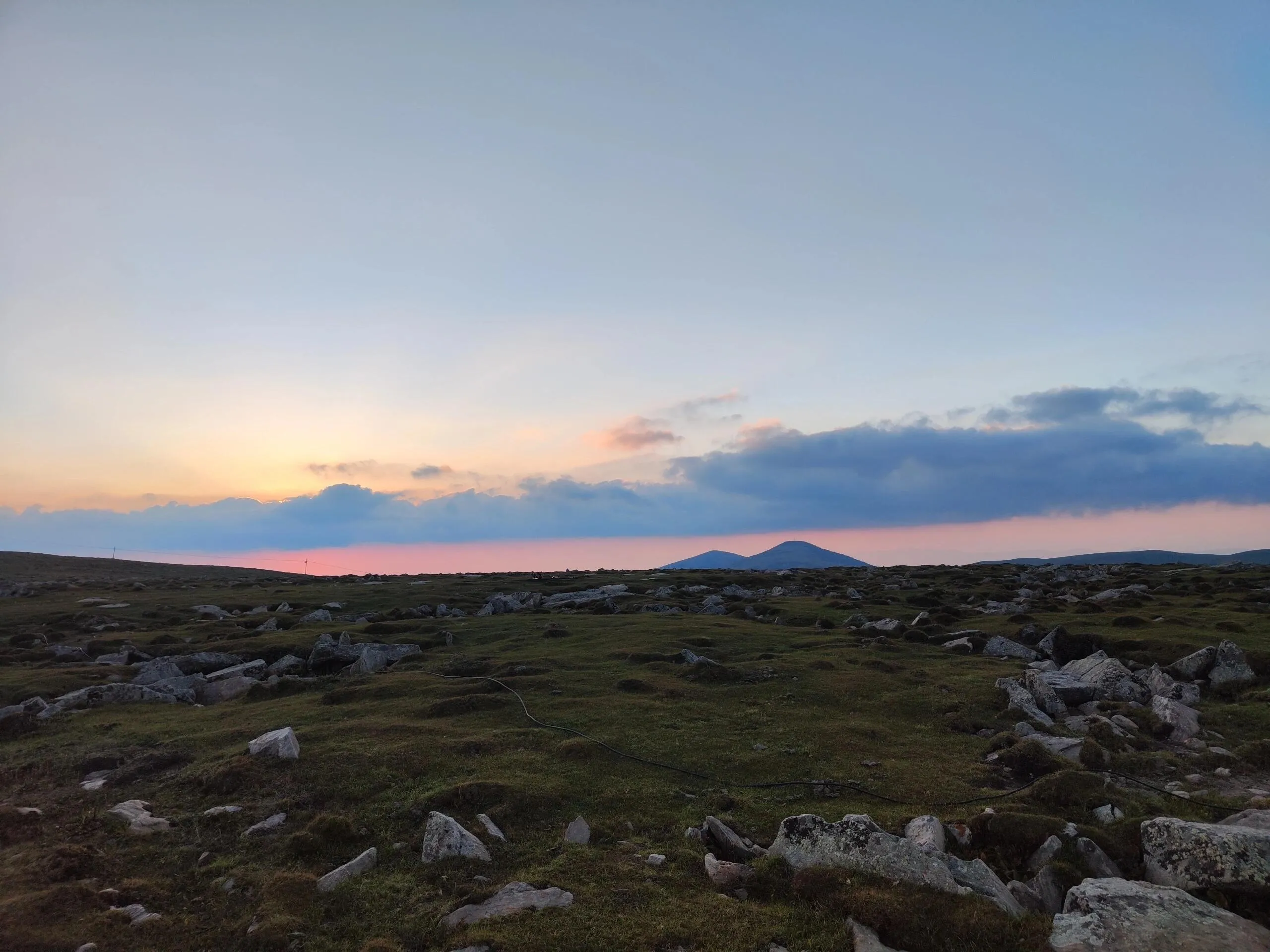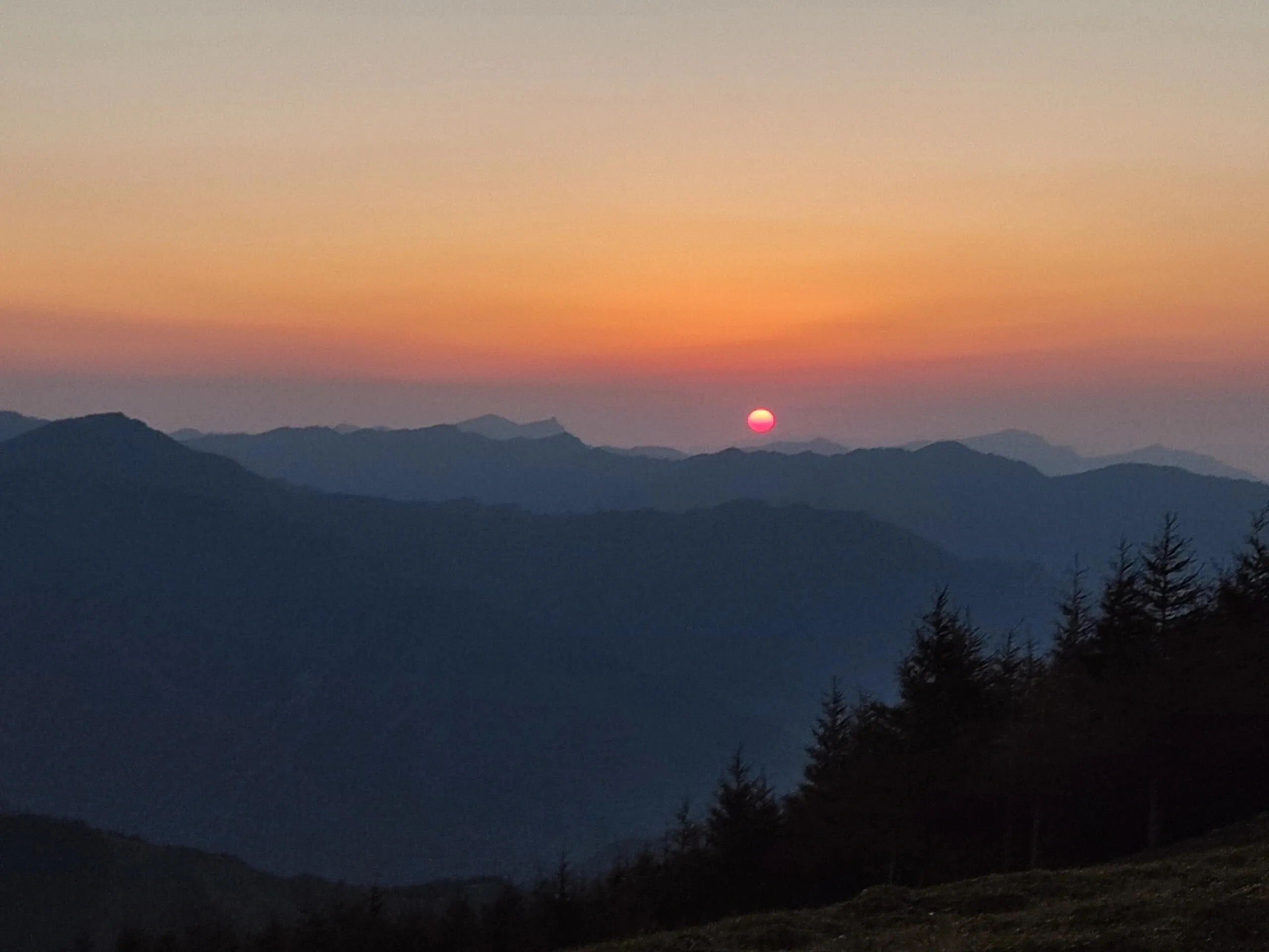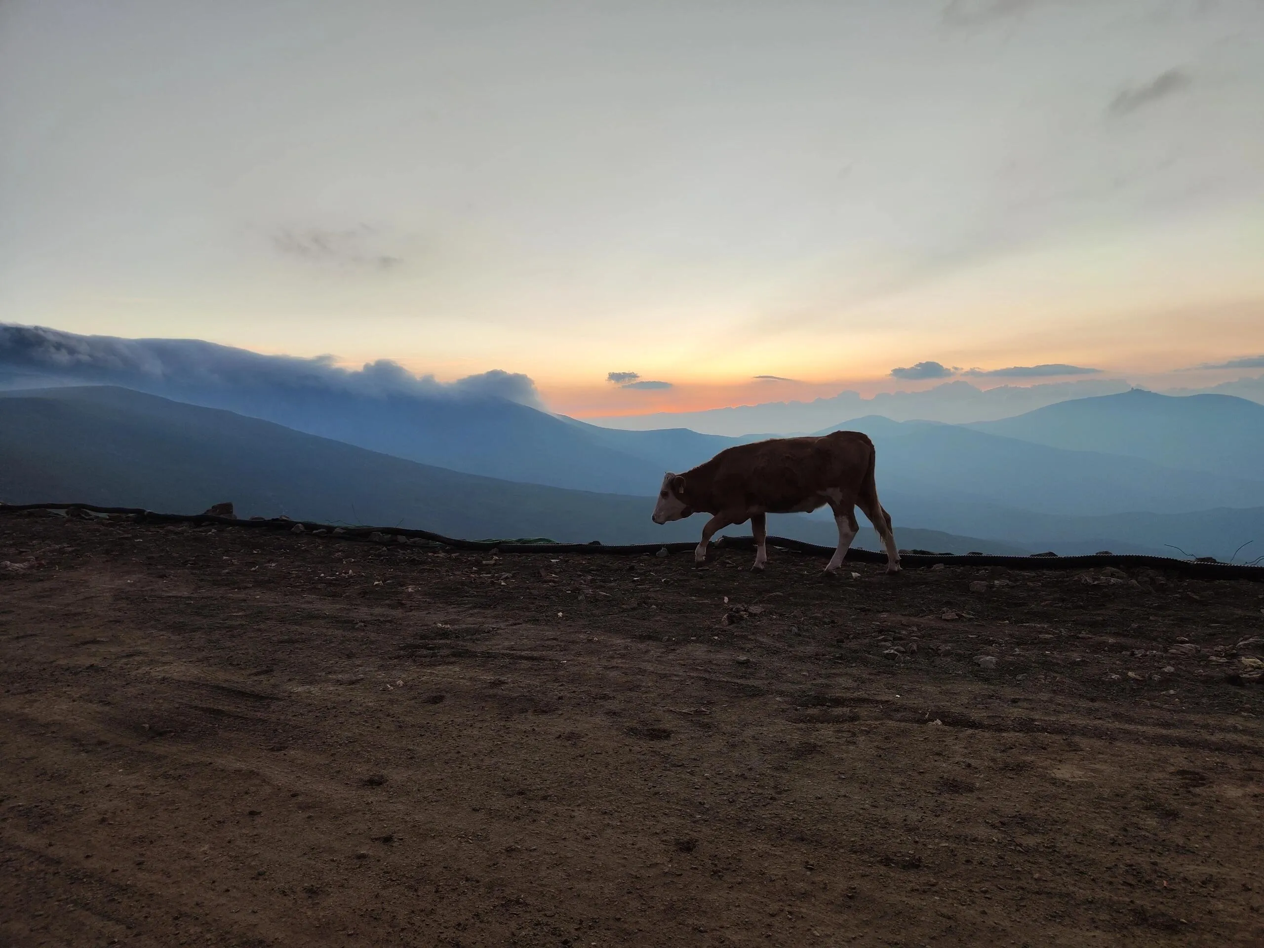 第二天是最长的一段,全程46公里,爬升2293米 。为了欣赏南台的日出美景,凌晨4:20就从村里出发。虽然遇到铁栅栏阻碍,耽误了半小时,但最终在5:47成功登顶,恰好赶上壮观的日出。这一天的行程经过南台、古南台、大南庄、清凉寺、瓦厂梁村、大明烟村、西台、中台,最后在澡浴池欣赏到了美丽的日落。