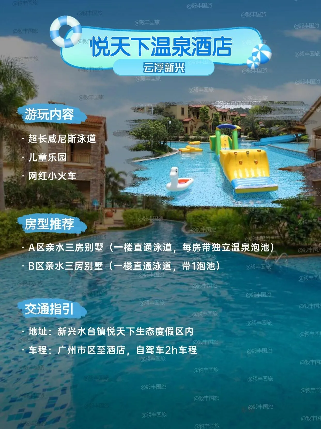 阳春DS温泉度假酒店去年新开业,出门就是大泳道。
