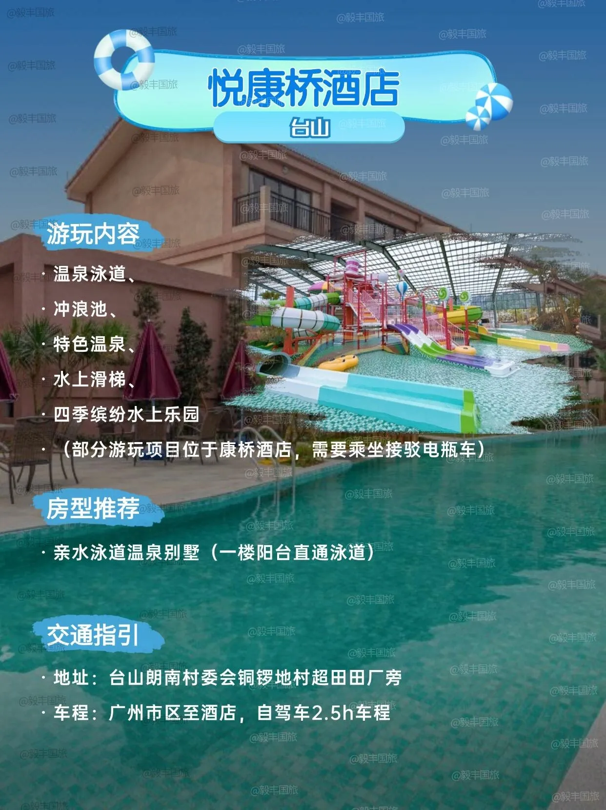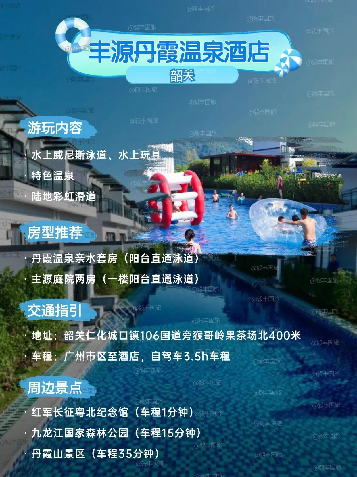 韶关丰源丹霞温泉酒店的网红泳道环绕酒店,人少,游玩体验更佳。