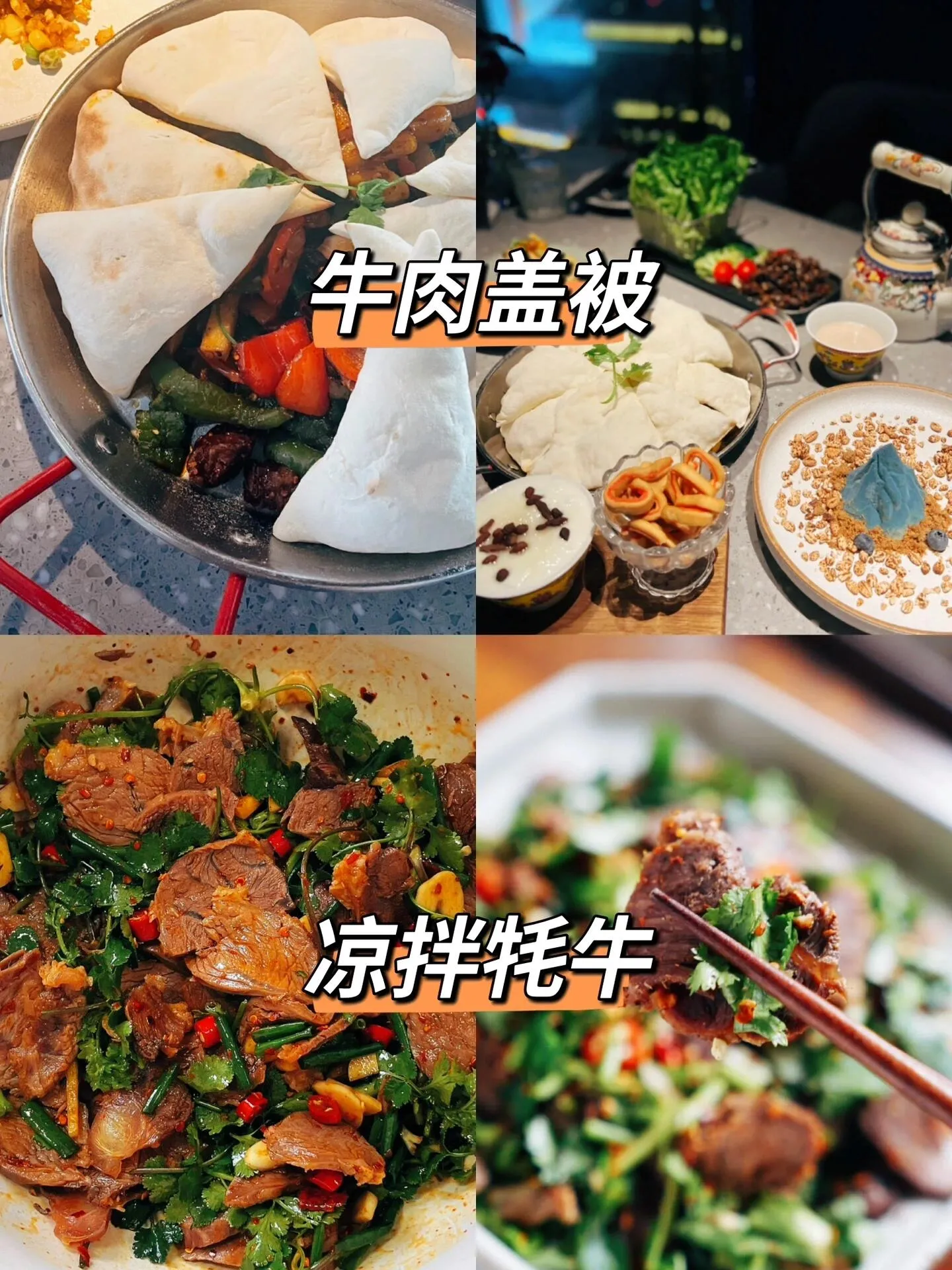 牛肉盖被:酥油饼包裹牛肉、土豆等食材,味道鲜美。