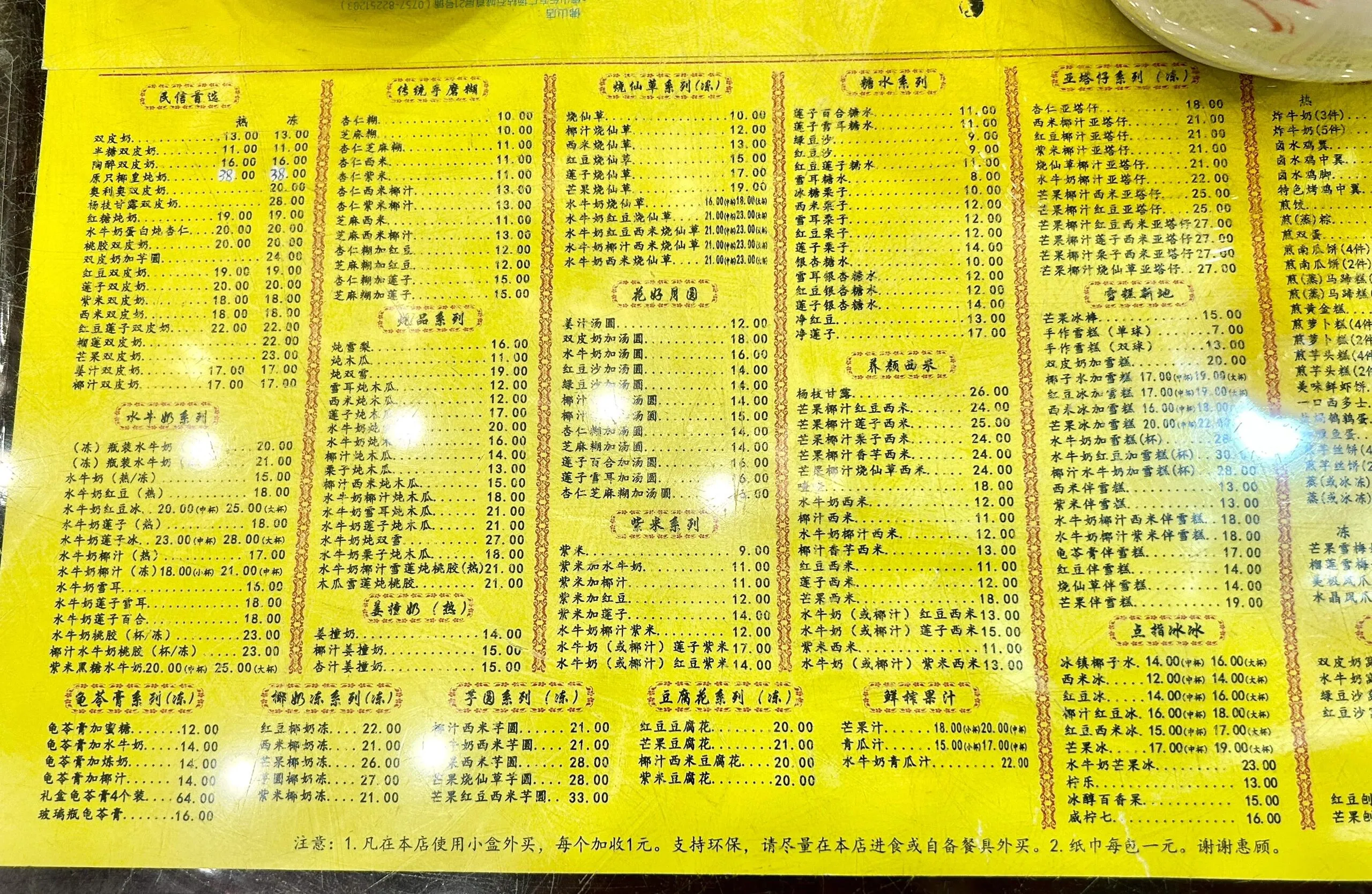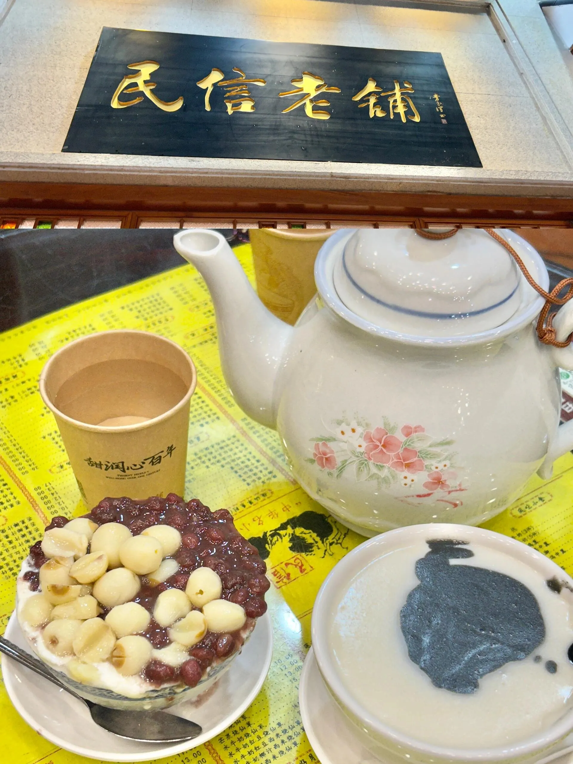 民信老铺提供的红豆莲子双皮奶份量较小,性价比不高 ,有些网红店的特征。双皮奶质地细腻,莲子和红豆给的很足,但在顺德这个“牛奶天堂”,22元一碗的价格略显昂贵。店里的杏仁芝麻糊虽然外观吸引人,但杏仁糊的味道略显怪异,带有药味,芝麻部分口感尚可。