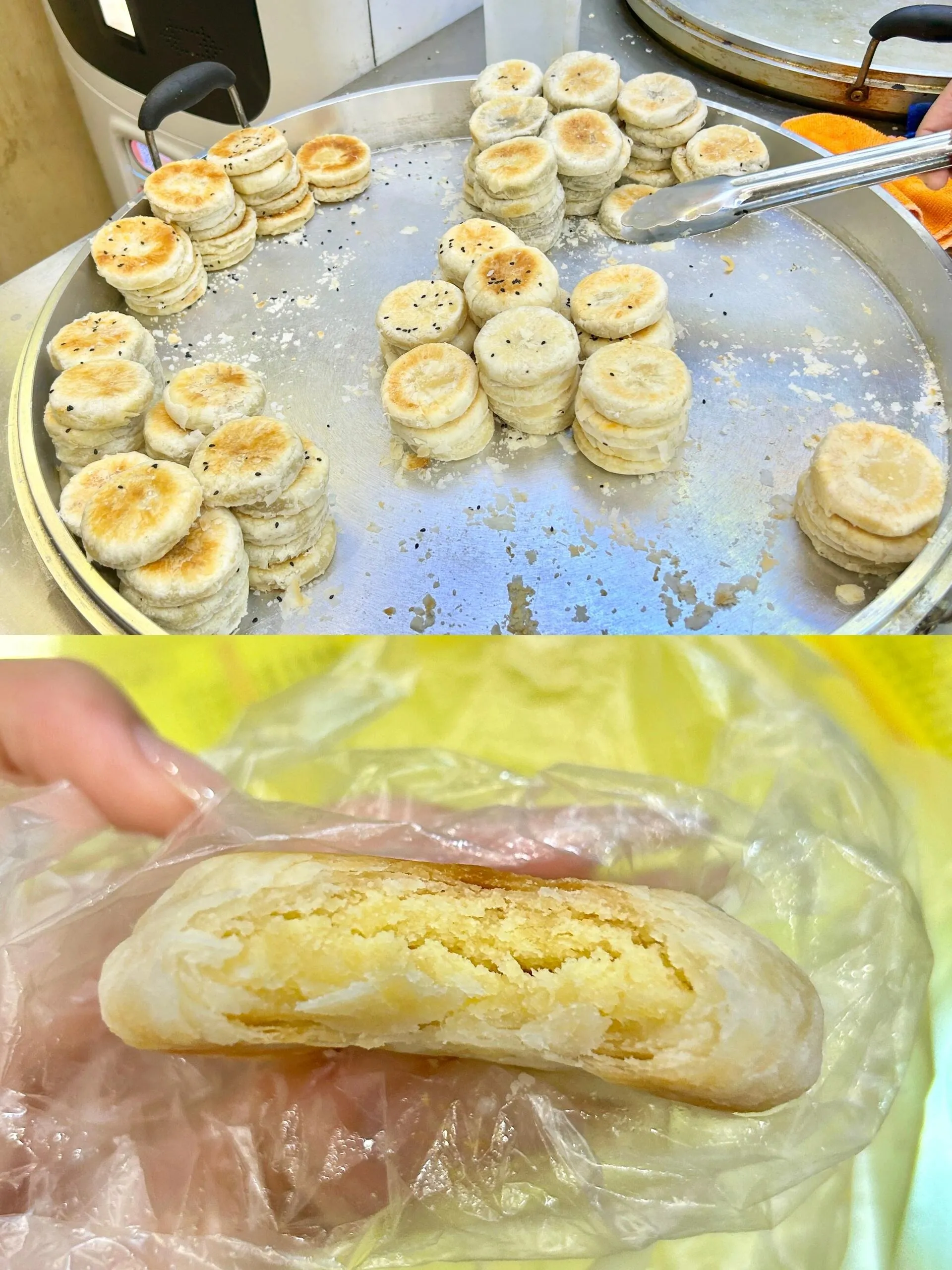 人山人海金丝牛肉饼是一家常见的小吃店。 他们的金丝牛肉饼外层油炸金黄酥脆,口感尚可,但并不特别。同店的老式绿豆饼是传统的酥皮绿豆饼,微甜可口,但也不值得特意前来品尝。