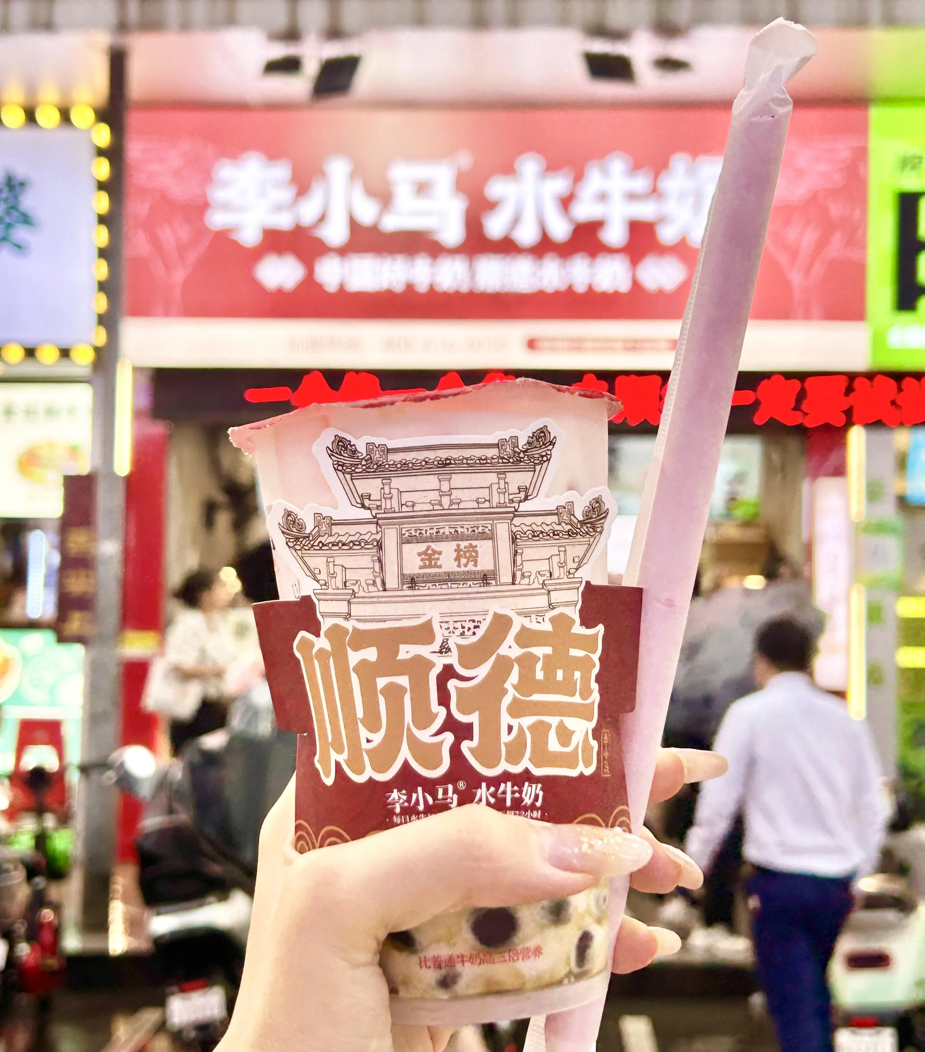 李小马顺德水牛奶店的老红糖珍珠水牛奶将顺德特色的水牛奶制成饮品。 价格不贵,水牛奶醇香清甜,搭配现熬的软糯红糖珍珠,既养生健康又美味可口。