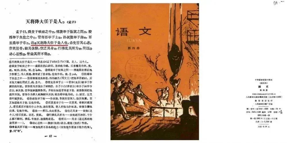 最近网络上掀起了一场关于记忆的大争论,众多网友坚信自己早年在语文课本中学习到的内容是“天将降大任于斯人”,而教材上却明确写着“天将降大任于是人”,人教社也对此回应, 自从1961年收录孟子的《生于忧患,死于安乐》课文以来,历套教材文章一直都是“故天将降大任于是人也” ,为这番疑问画上了句号。