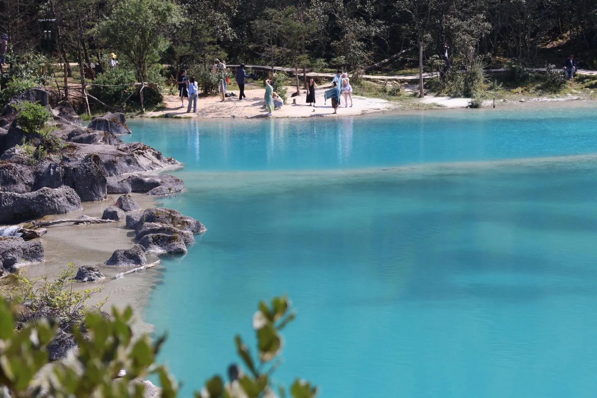 之后游览蓝月谷。从大索道出来后乘坐大巴,注意第二站才是蓝月谷下车点。随后前往云杉坪(需要提前预订下午1点后的门票)。